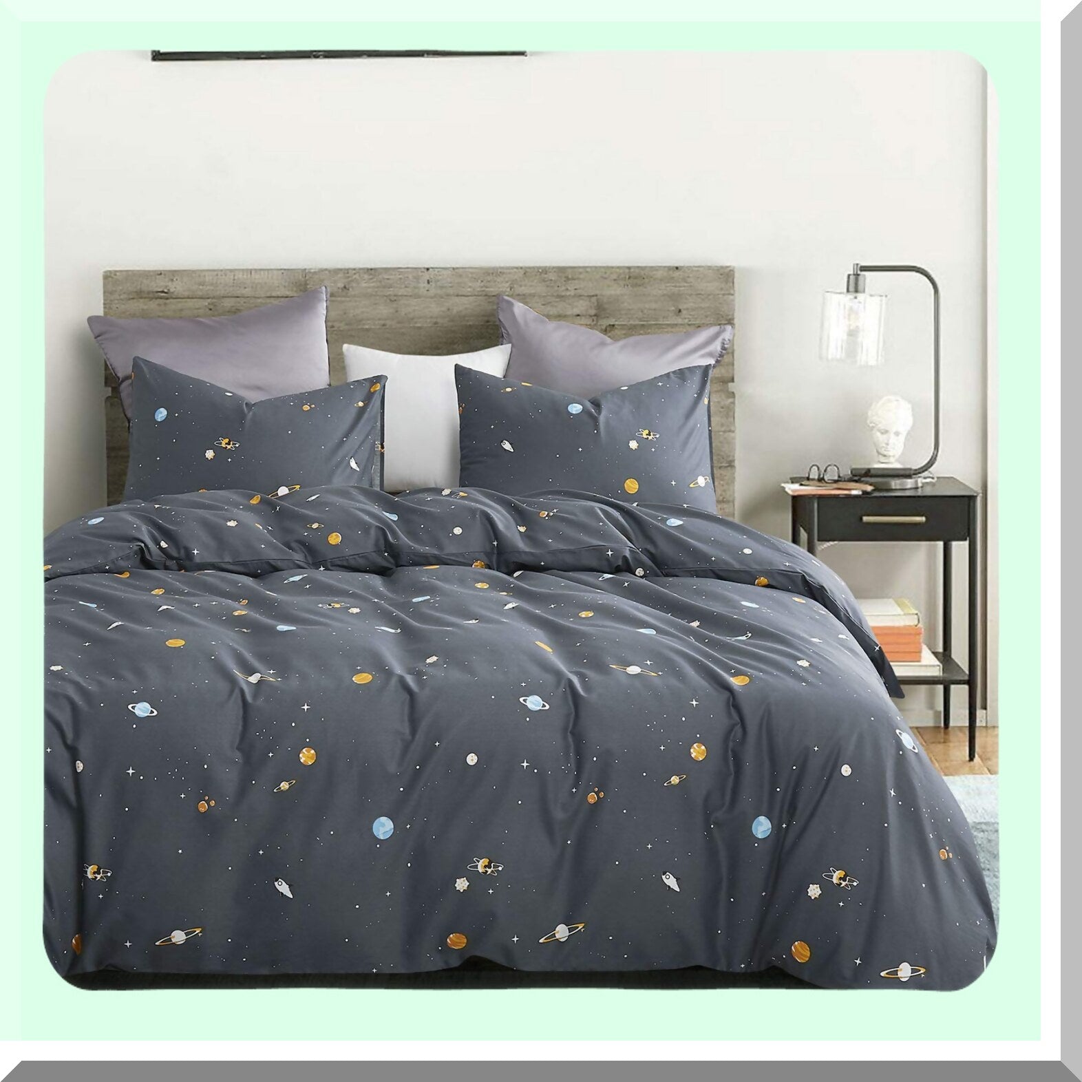 Starlight Gray Cotton Comforter Set - 3 Piece Lightweight Bedding for Men and Women. Cute Neutral Space Star Design. Size: Queen.
