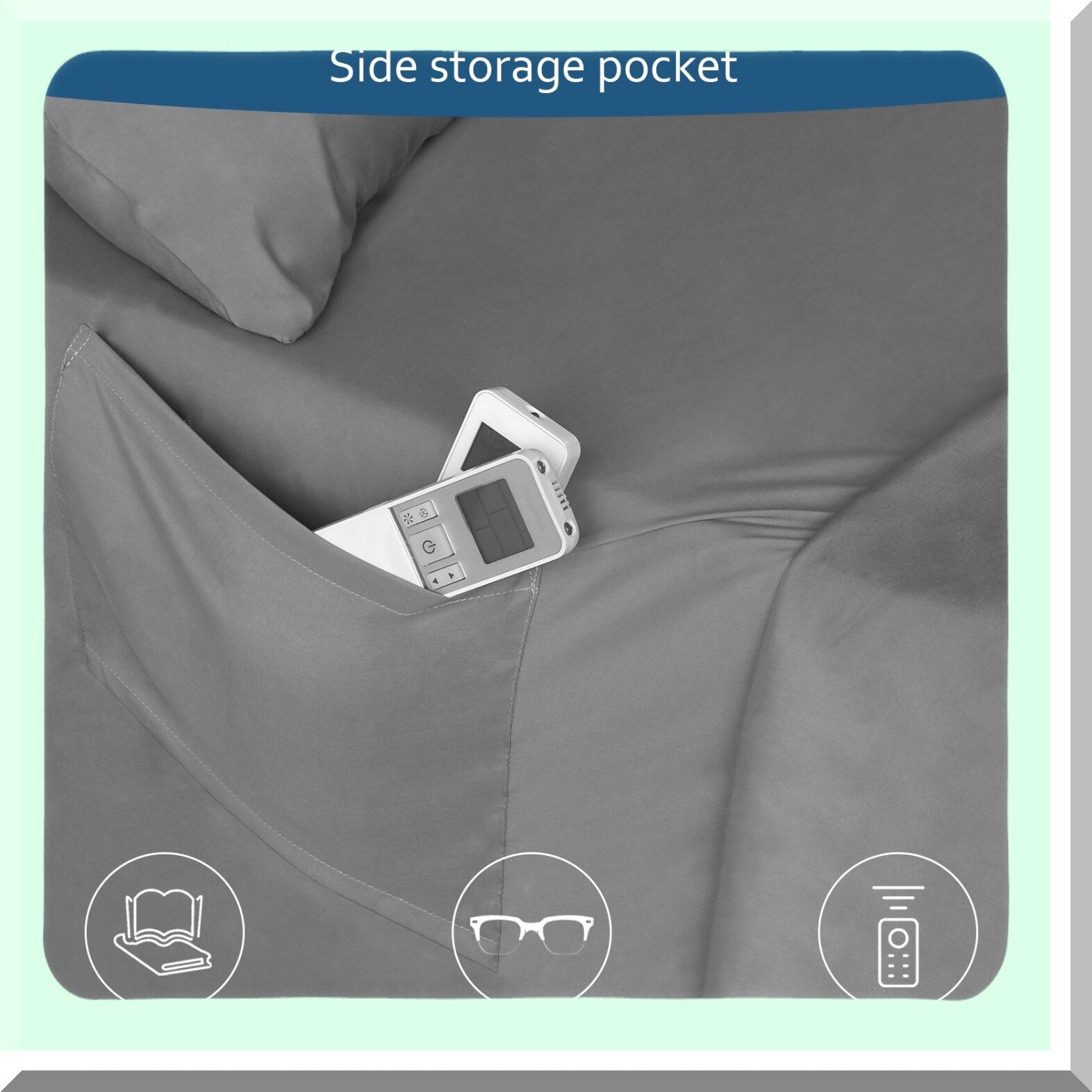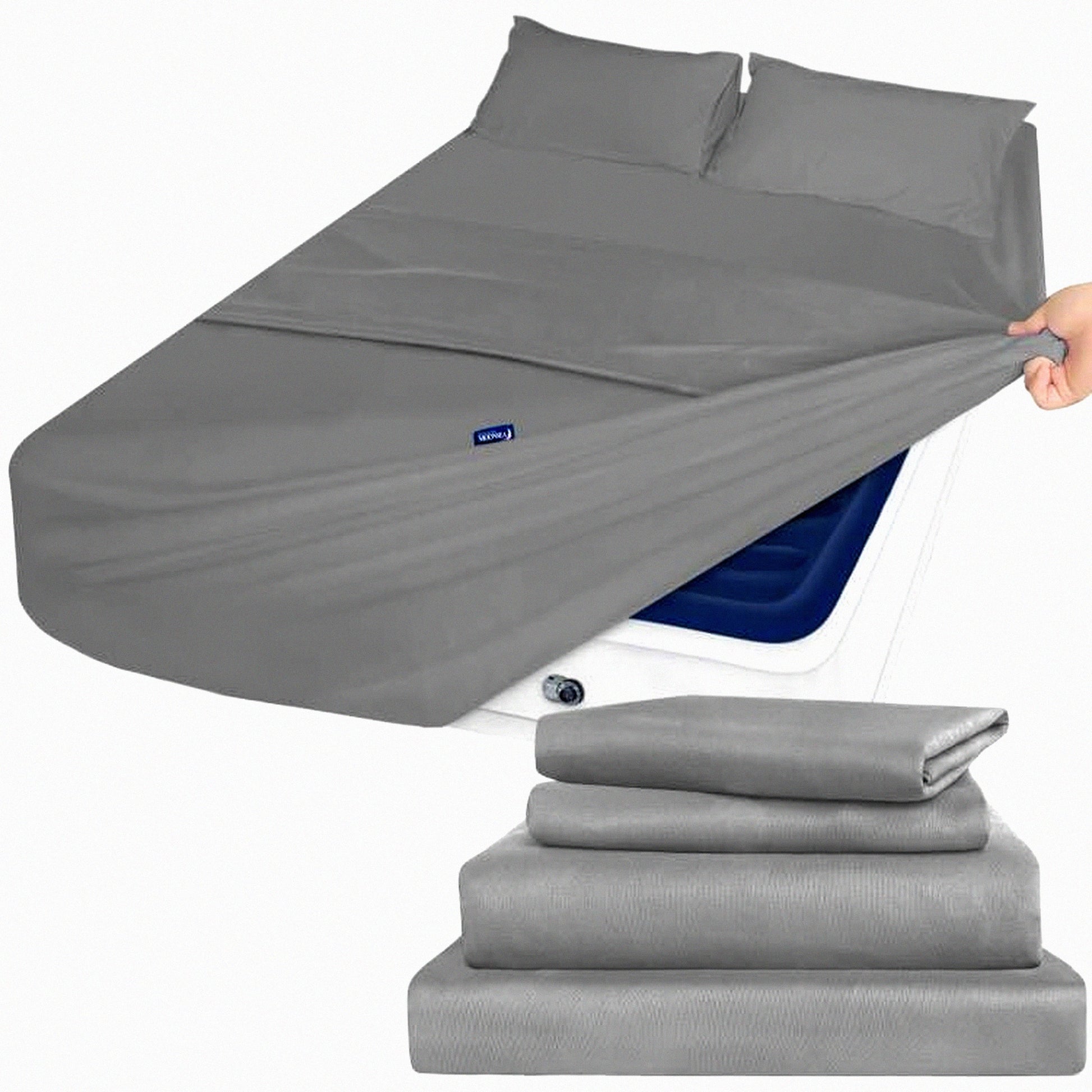 DeepSleep Queen Air Mattress Sheet Set - 4 Piece Bed Sheets for Queen Size Air Beds - Deep Pocket, Fade Resistant, Grey - Fits 16in to 24in Pillow Top Mattresses