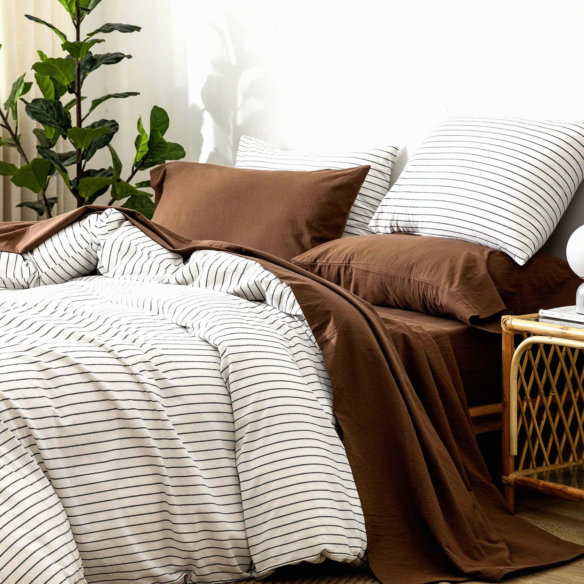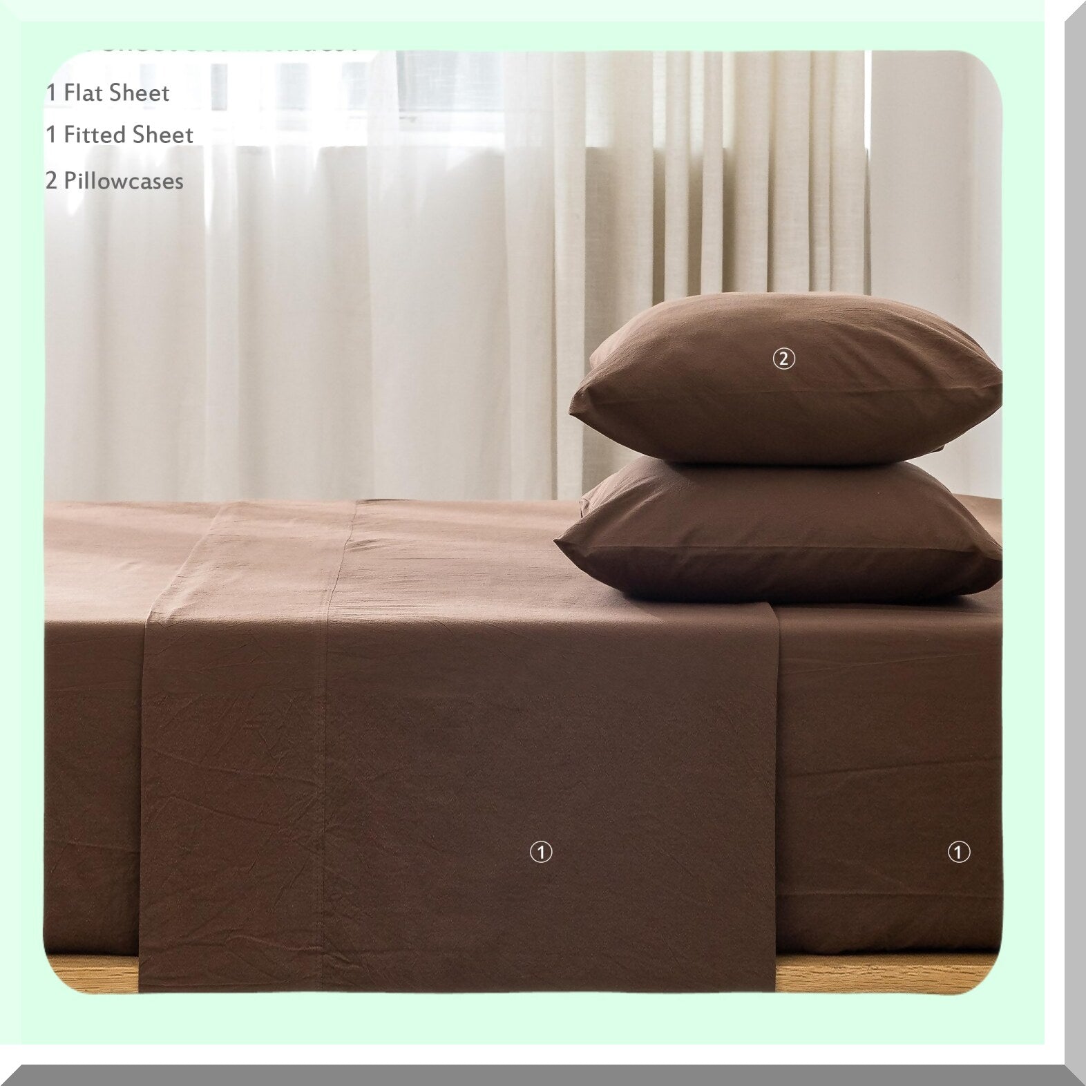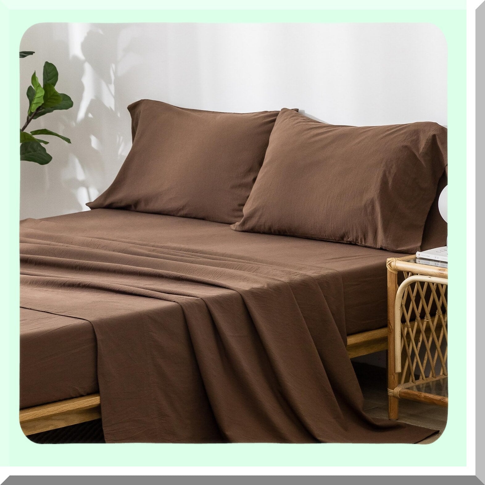 Cocoa Brown Linen Comfort Set - 100% Washed Cotton Bedding Sheet, Breathable & Durable, Queen Size, Soft & Comfy, Textured Luxe Feel