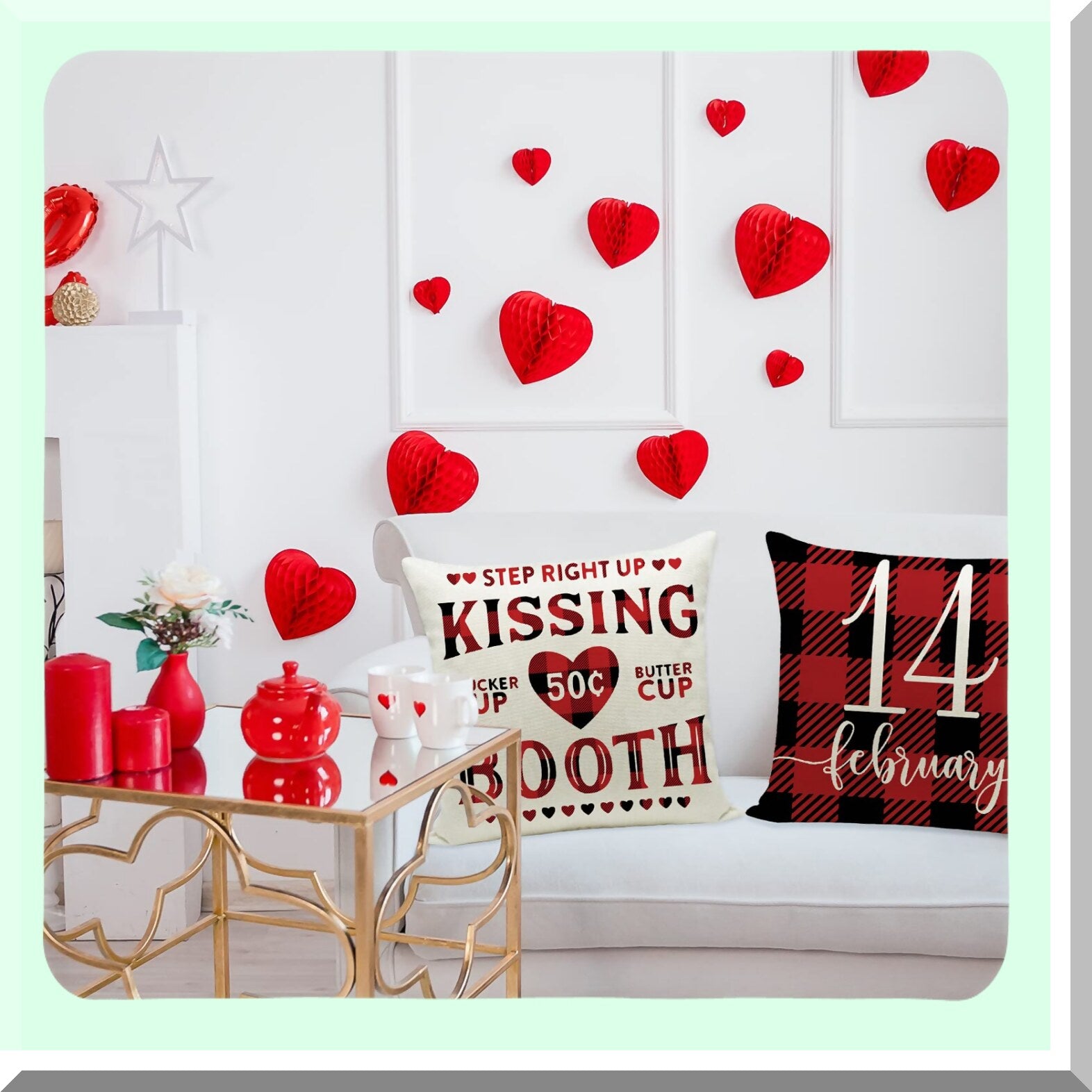 Valentine's Day Buffalo Check Pillow Set - Red Black 18x18 Inch Decorative Cushion Covers for Home Decor - Throw Pillows Decoration Case Pack of 4