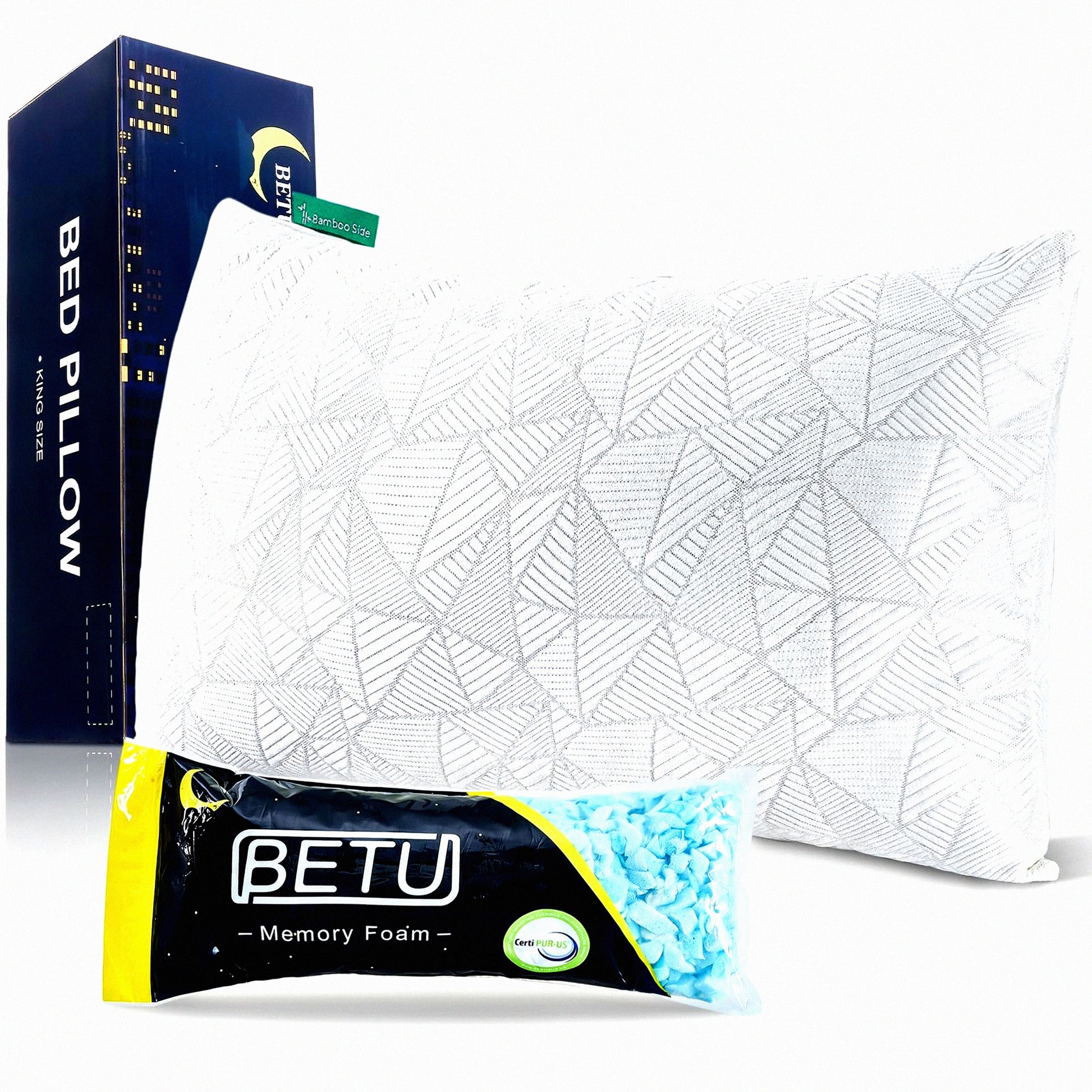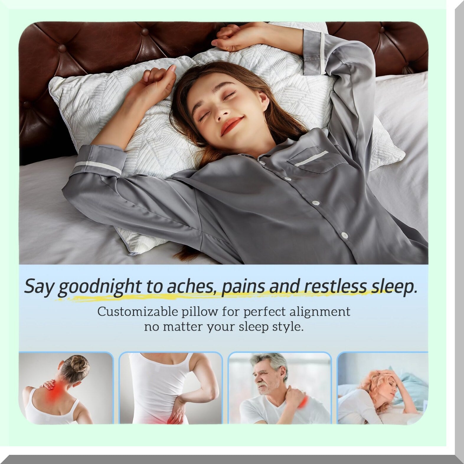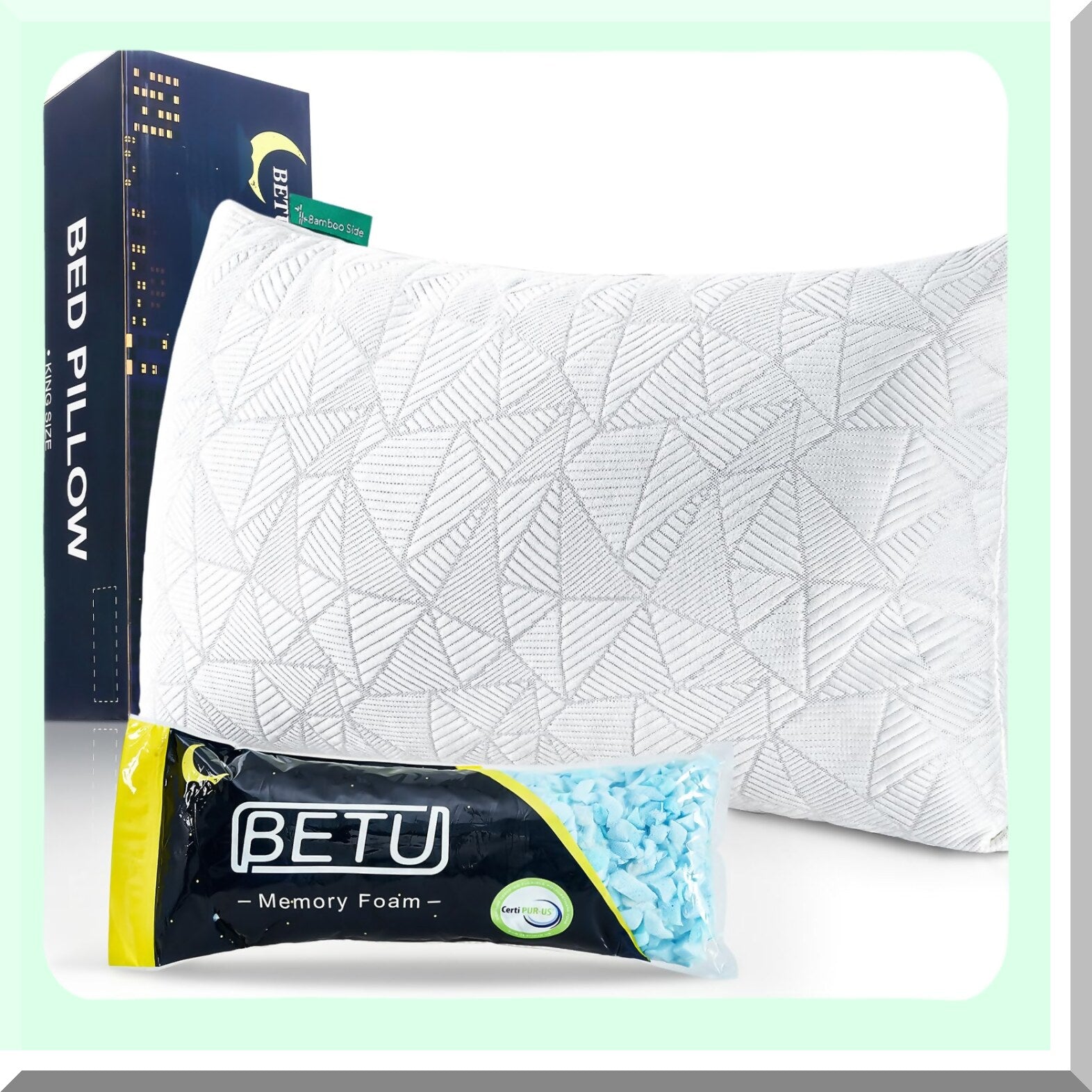 Cooling Comfort Memory Foam Pillow - Queen Size Bamboo Adjustable Bed Pillow for Hot Sleepers. Ideal for Back Pain, Neck & Side Sleepers. Cooling Gel Infused CertiPUR-US Foam.