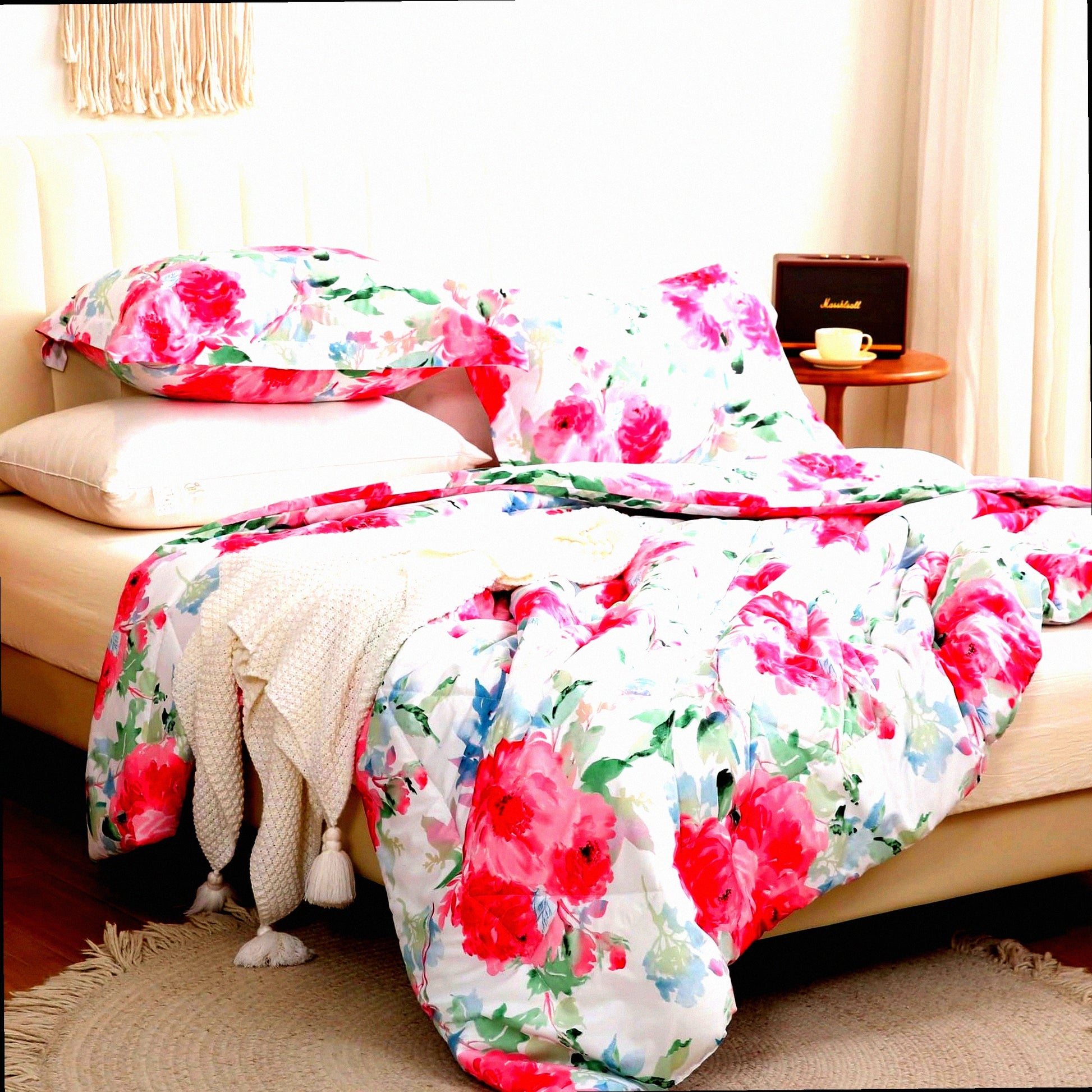 Floral Bliss 3-Piece Comforter Set - All Season Lightweight Microfiber Bedding with Pillow Shams - Queen Size - Printed Floral Design