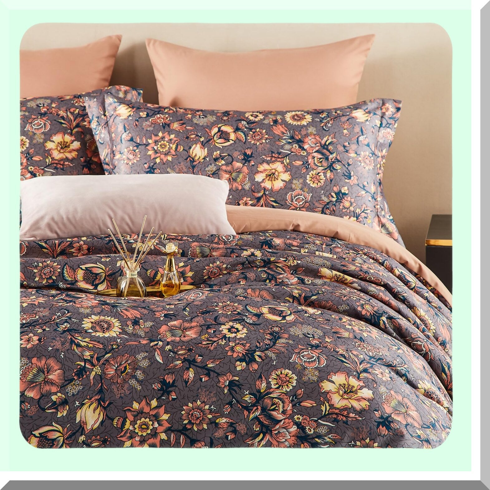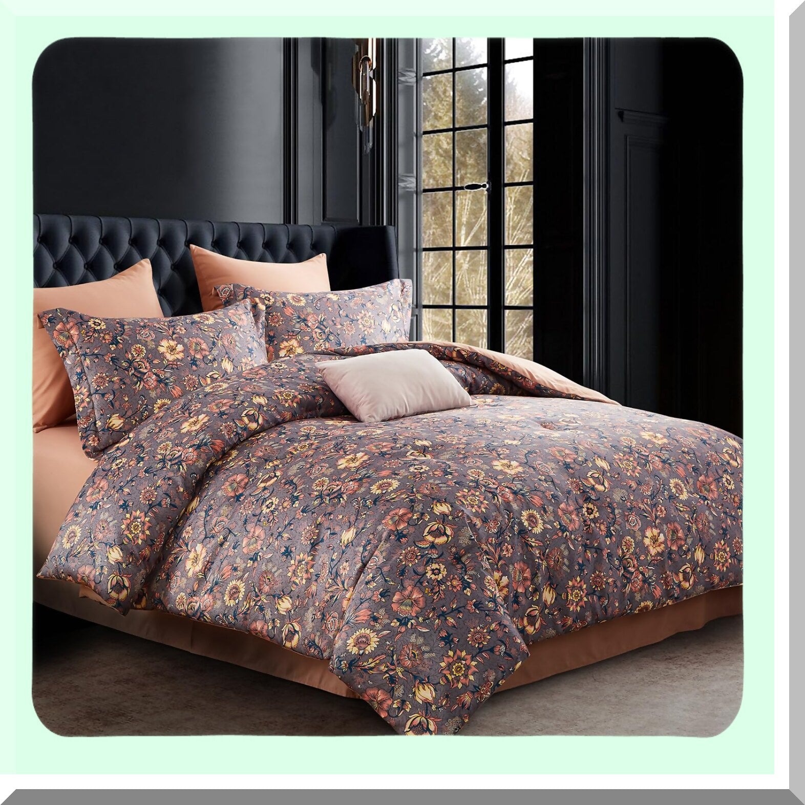 Floral Bliss 7-Piece Comforter Set - Ultra-Soft Lightweight Bedding for All Seasons - Brown Bed in a Bag - Size Comforter Set