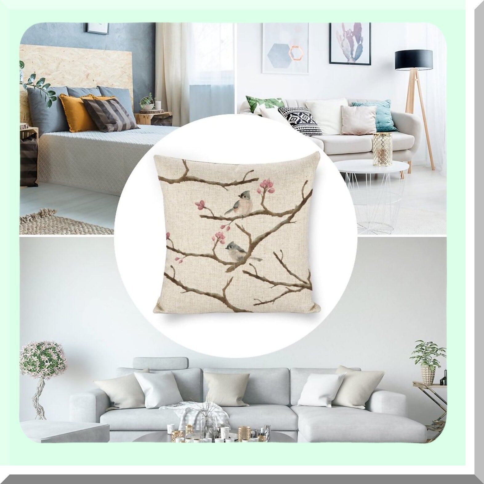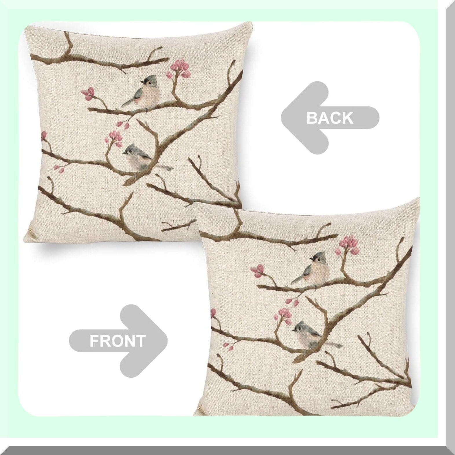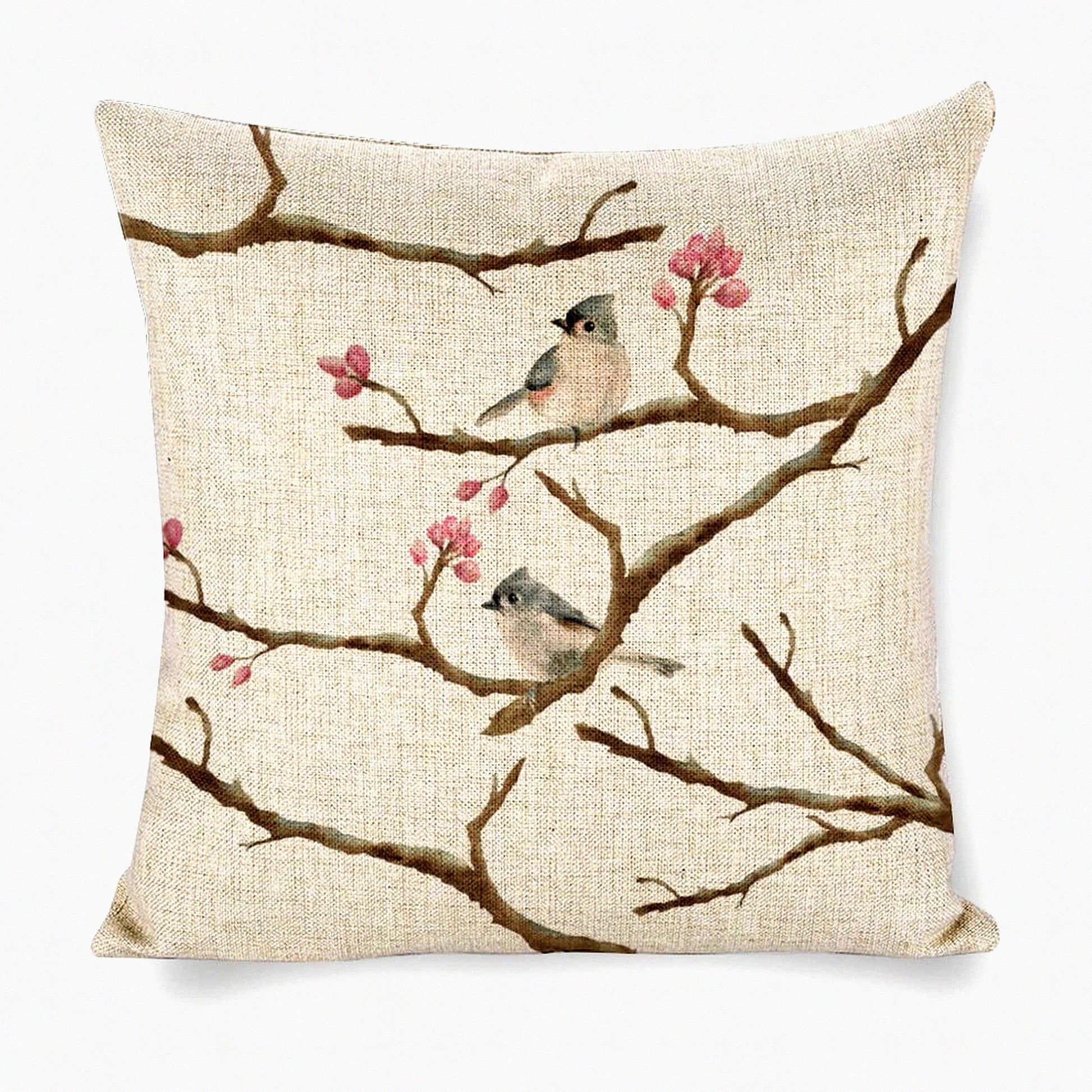 Nature's Nest Linen Bird Pillowcase - 18x18 Decorative Tree Cushion Cover for Bedroom, Living Room, Car. Add a touch of nature to your space!