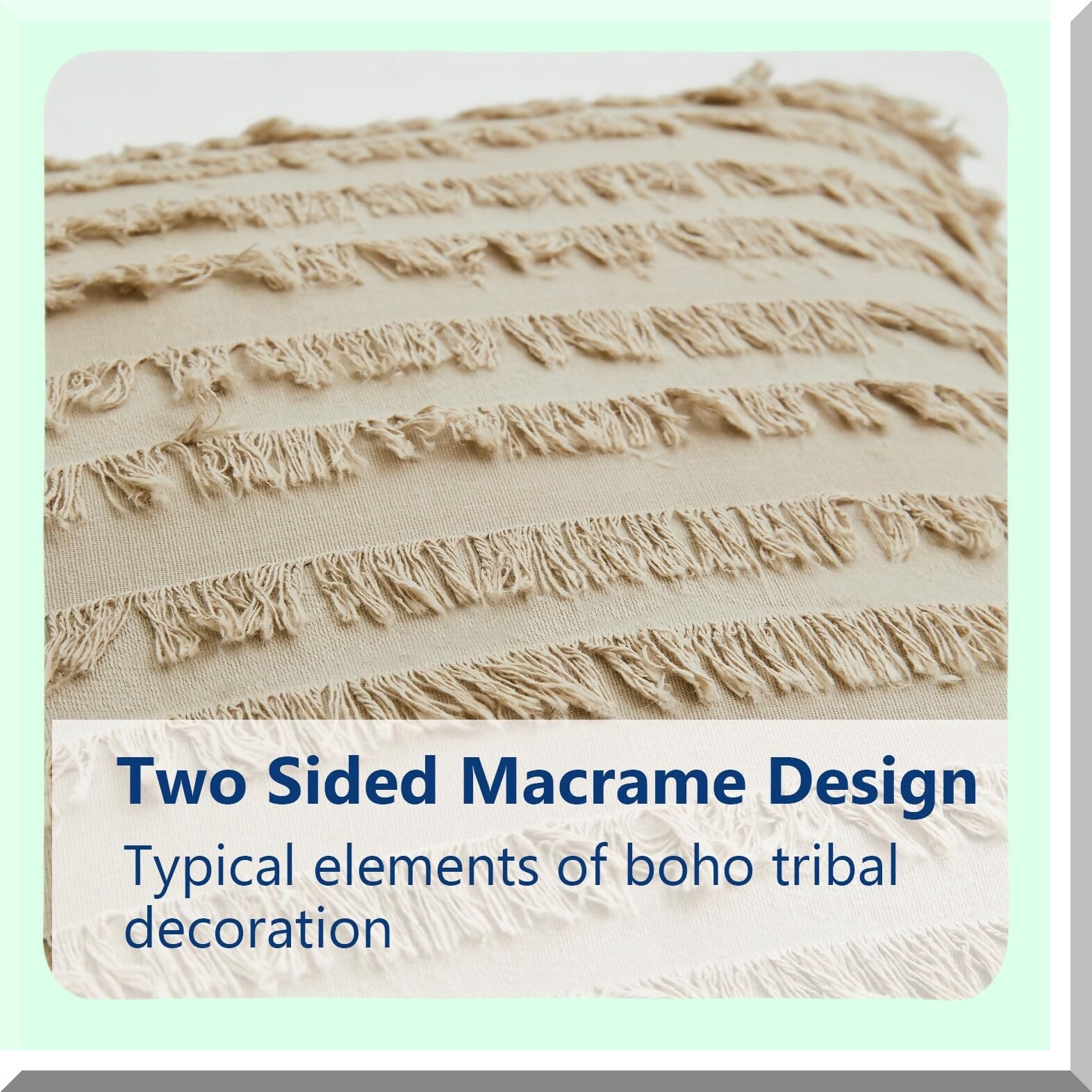 Boho Farmhouse Striped Cotton Pillow Covers - Set of 2, 18x18 Inch Accent Cushion Cases with Tels for Sofa Couch, Soft Decorative Home Décor