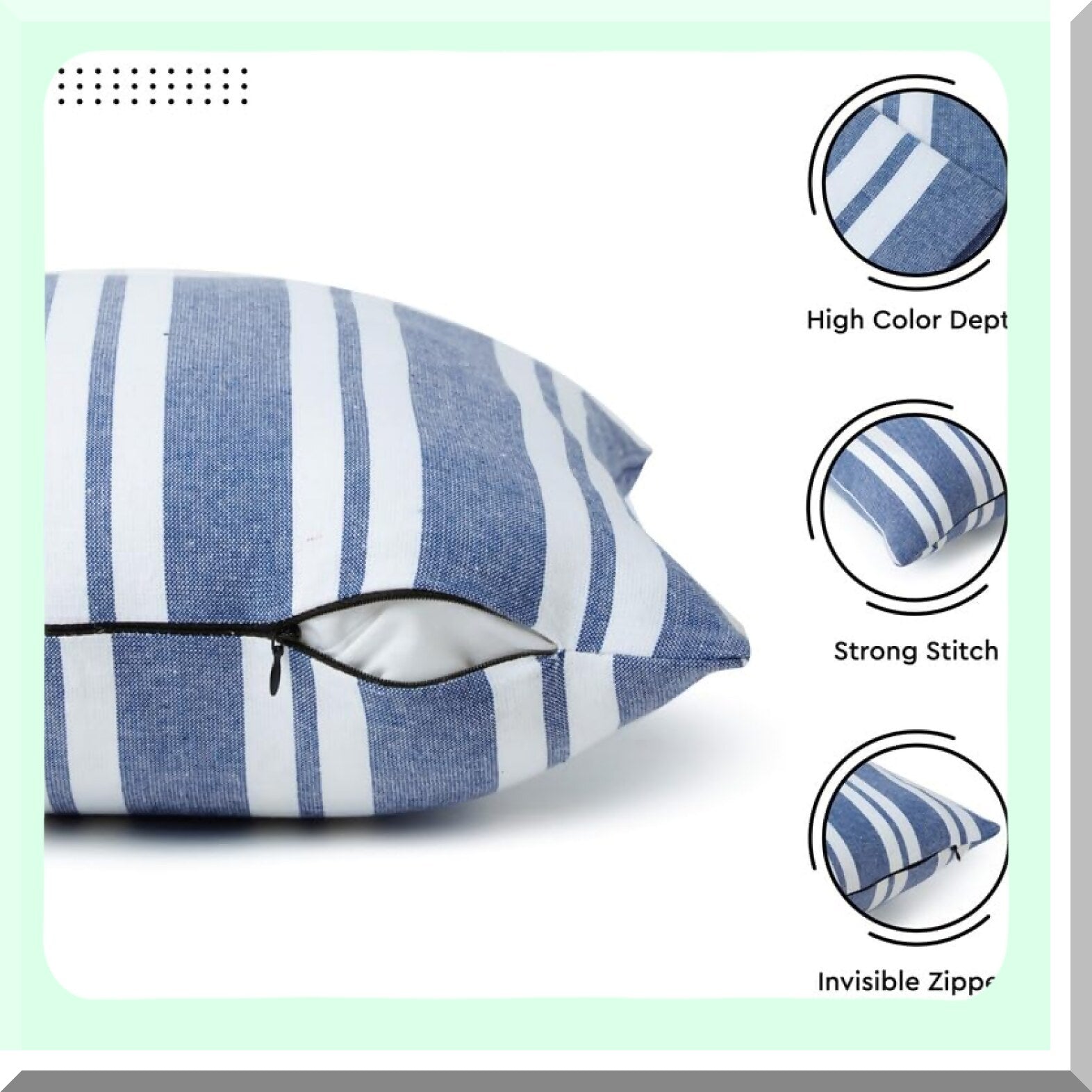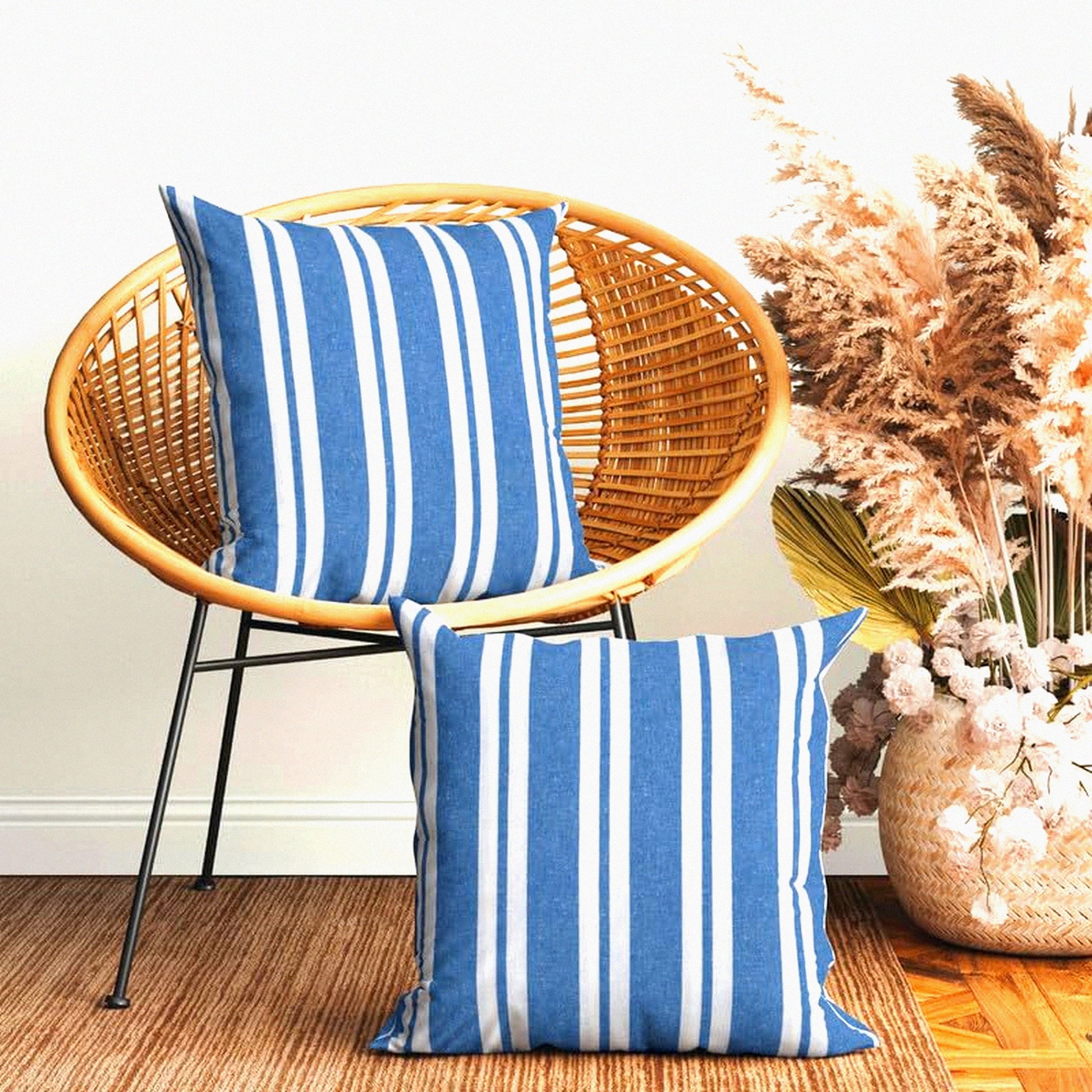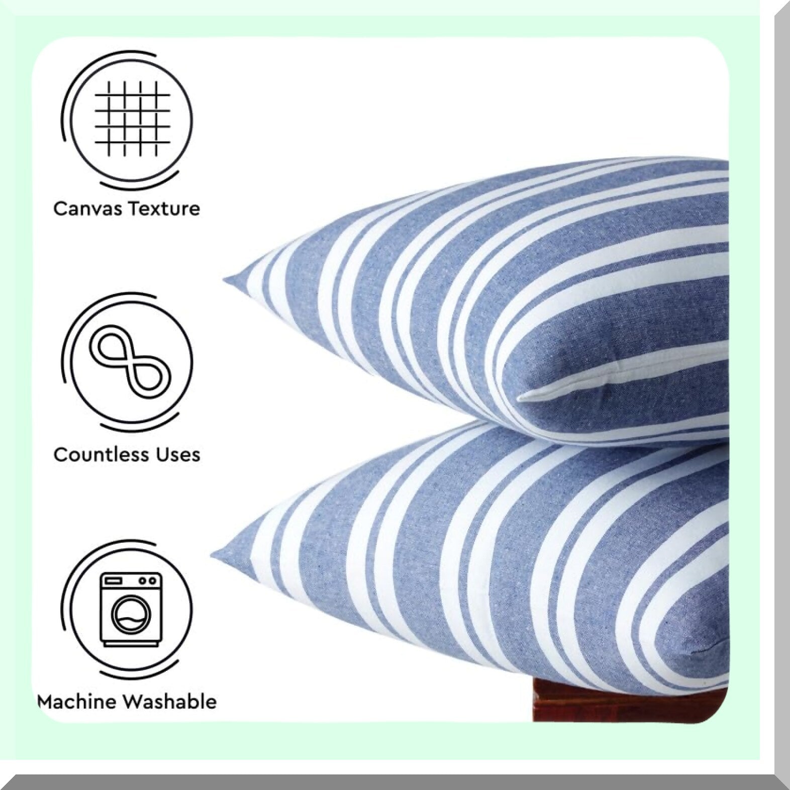 Blue Stripes Farmhouse Decor Pillow Covers - Set of 2 18x18 - Thanksgiving Cushion Shams - Franca Fall Home Decor - No Insert - Pack of 2