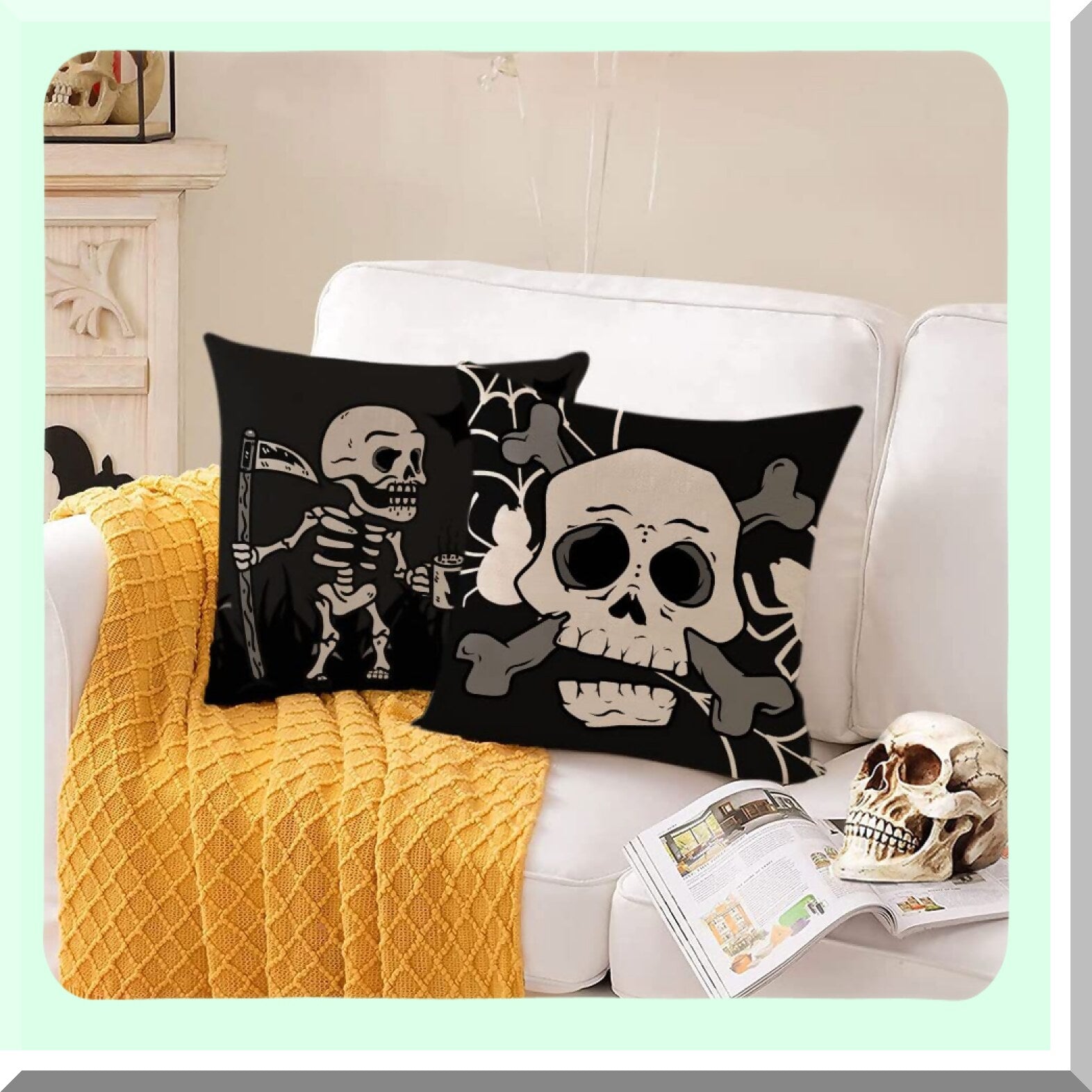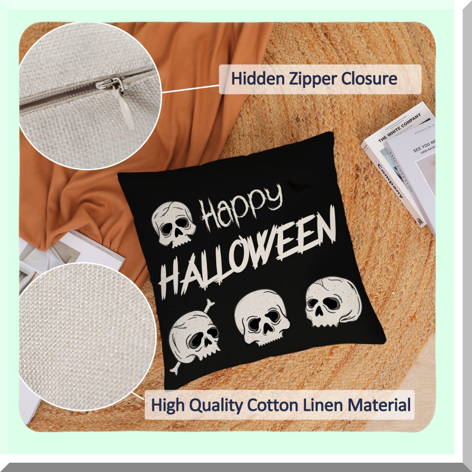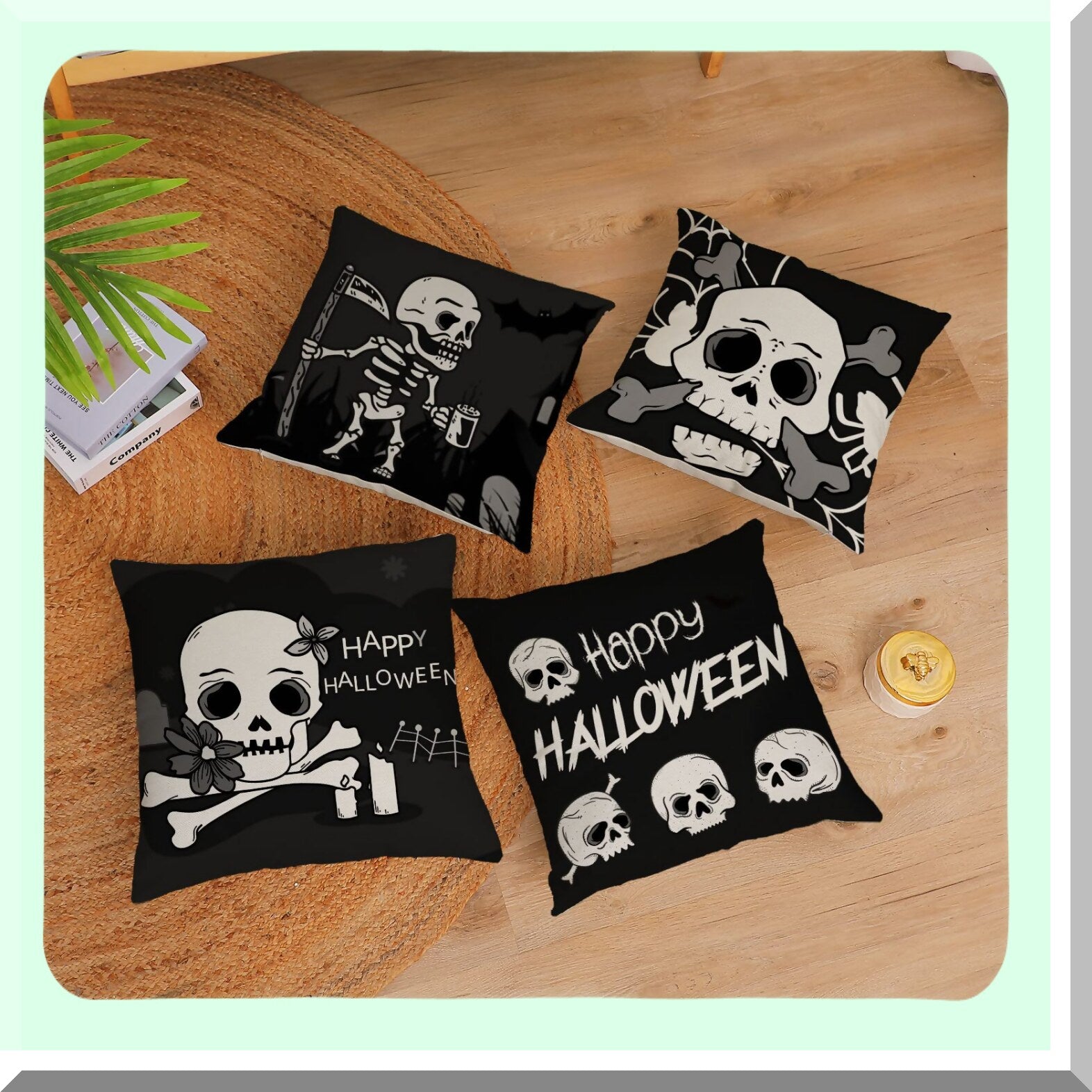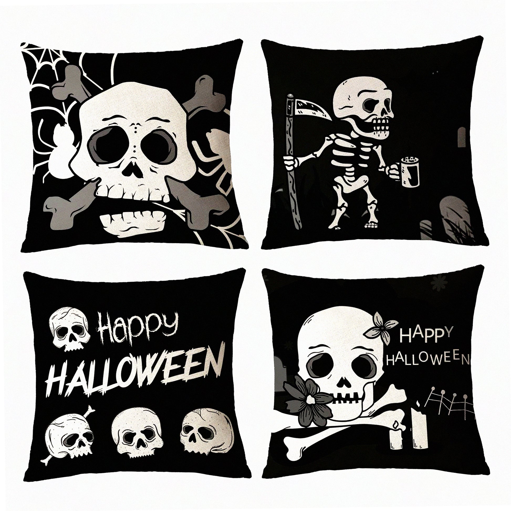 Spooky Skeleton Ghost Pillow Covers Set - Black Decorative Throw Pillows - 18x18 Cushion Covers for Home Decorations - Outdoor Sofa Couch - Pack of 4