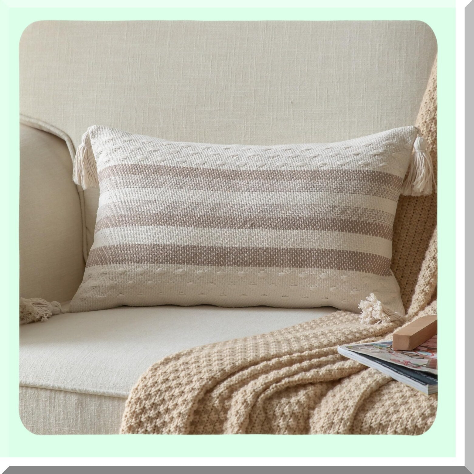 Neutral Farmhouse Lumbar Pillow Cover - Boho Decorative Cushion for Sofa, Bed, Living Room - Beige Taupe Line Throw Pillow Case 12x20 - Outdoor Indoor Home Decor Accent - Pack of 1
