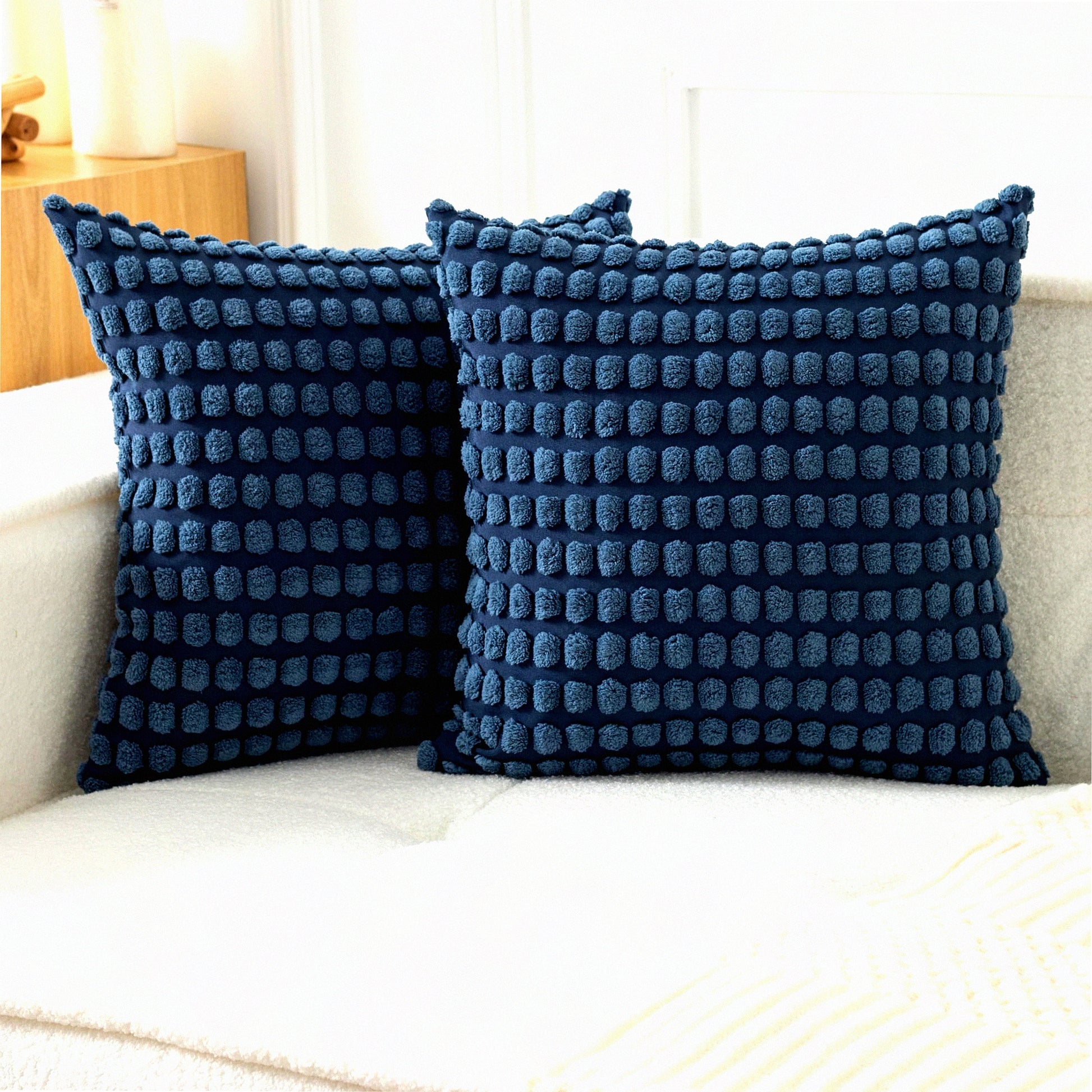 Granular Plush Corduroy Pillow Covers - Set of 2 Decorative Throw Cushion Cases in Dusty Blue, Boho Farmhouse Style for Couch Sofa Bedroom Home Decor - 18x18 Inch
