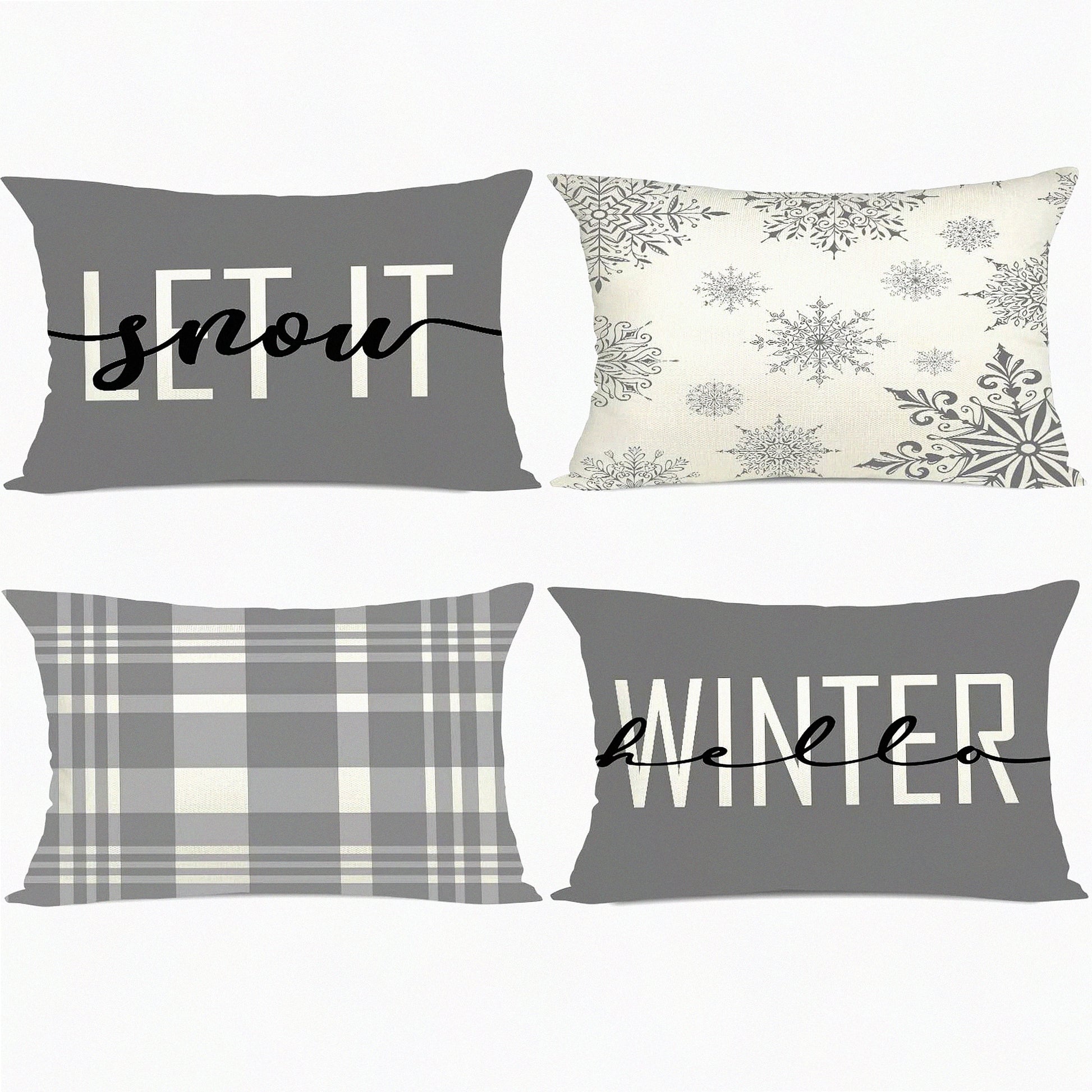 Winter Wonderland Snowflake Plaid Pillow Cover Set - Set of 4 Decorative Xmas Pillow Shams for Couch Sofa - Let it Snow Holiday Slipcovers