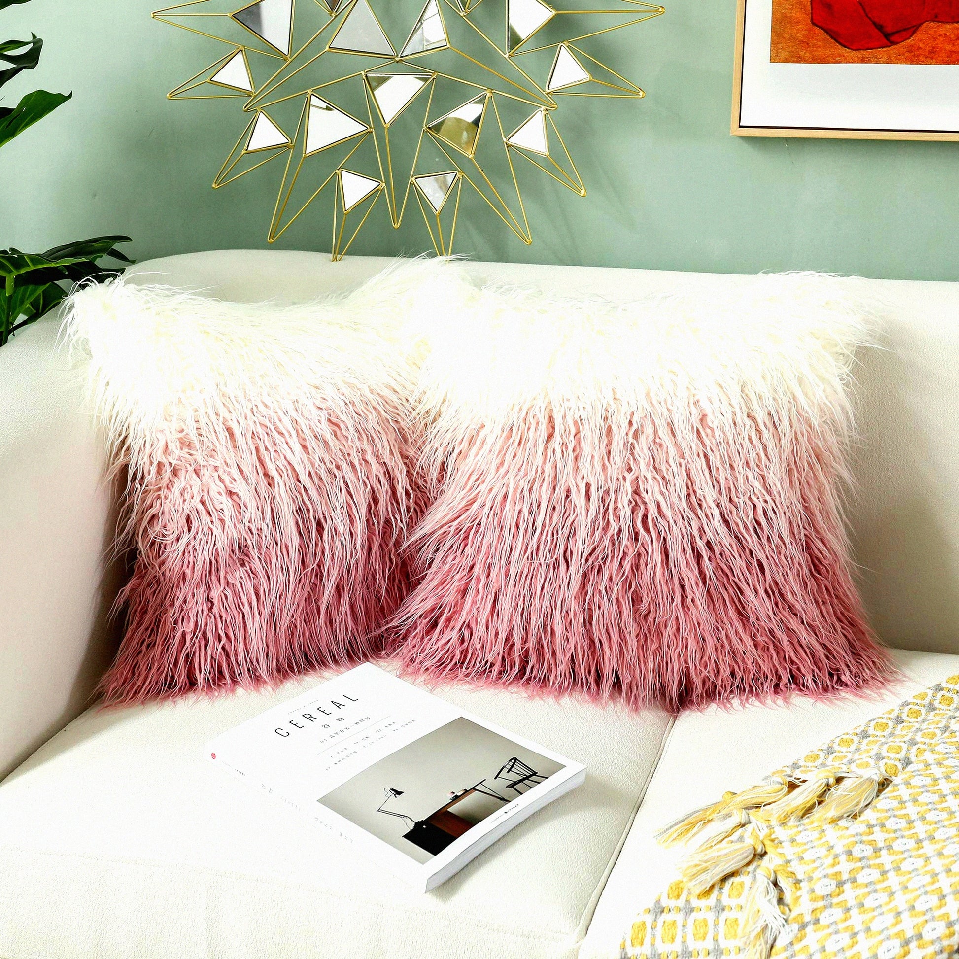 Made of gradient color and soft velvet, this 18 x 18 inch pillow cover is fluffy and super soft. It features a hidden zipper with matching color on the back, which is made of suede, ensuring smooth operation. The cover adds a luxury and chic style to home decor and is suitable for couches, sofas, armchairs, parties, bedrooms, and cars. It allows easy insertion and removal of pillow inserts. Hand wash turned inside out on cold, and it will look brand new.