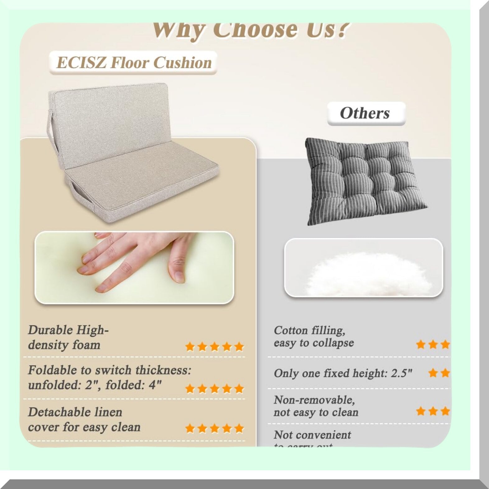 ZenSoul Square Meditation Floor Cushion - Large Yoga Pillow for Adults, Outdoor Seating Mat, Rectangle Sitting Cushion for Floor Meditation.