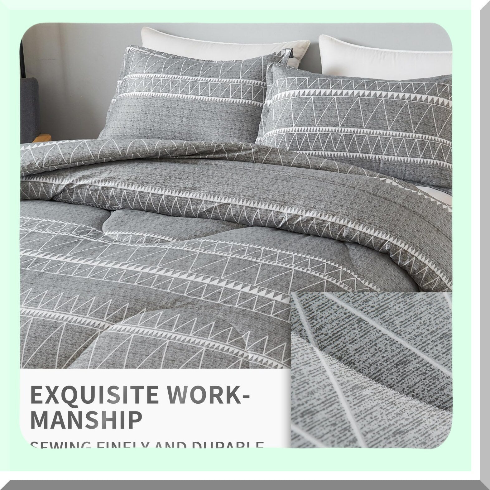 Geometric Grey Comforter Set - Bohemian Summer Bedding Ensemble with Lightweight Microfiber Down Alternative Fill - 3 Piece Bed Set