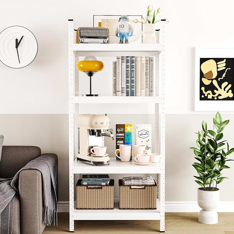 This 2000-pound capacity, four-tier garage shelving unit offers durable storage with adjustable metal shelves. Standing at 44.9 inches high, 23.6 inches wide, and 15.7 inches deep, it provides ample space for organizing tools, equipment, and other items. The sturdy construction ensures reliable support for heavy loads, making it suitable for garages, workshops, or storage rooms. The adjustable shelves allow customization to fit various items and maximize storage efficiency. Its white finish adds a clean, neat appearance to any space. Easy to assemble, this utility rack helps keep your environment organized and clutter-free. The compact design makes it versatile for different storage needs, providing a practical solution for heavy-duty storage requirements.