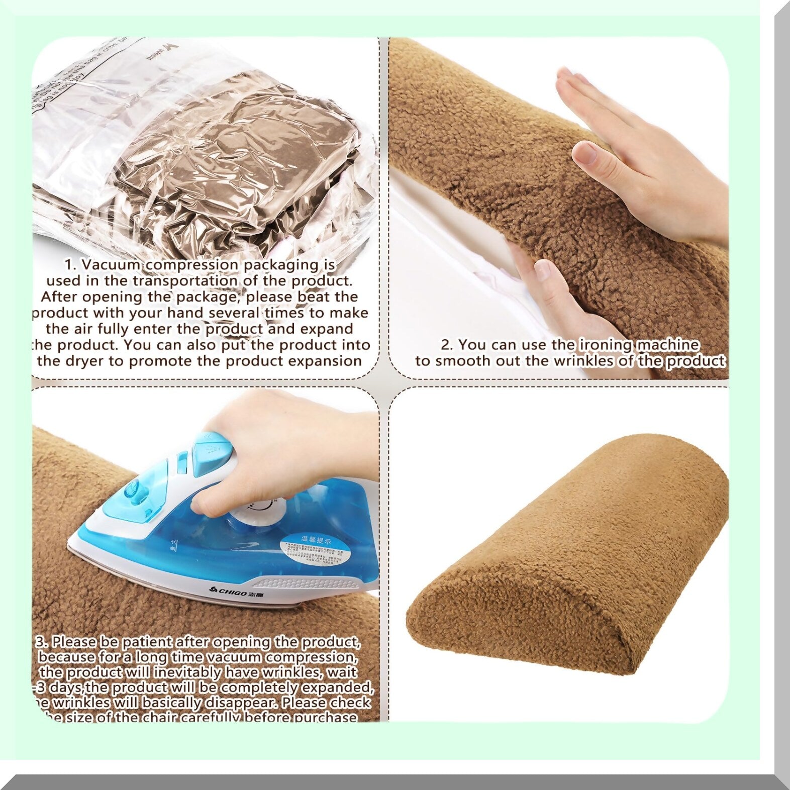The half moon bolster pillow included in the package is designed to elevate your feet while resting, measuring 23 x 10 x 4 inches in camel color. It is soft and comfortable to use, easily matching your furniture style. The product may be slightly squeezed due to vacuum packaging during transportation.