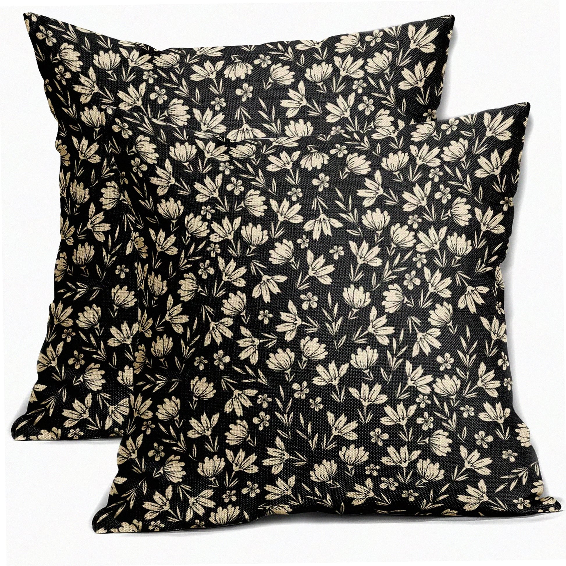 Rustic Floral Farmhouse Pillow Covers - Set of 2 Vintage Flower Cushion Cases 20x20 Black Cream Decorative Throw Pillows for Home Sofa Bed - Outdoor Linen PillowCase Cute Small Old Style Decor