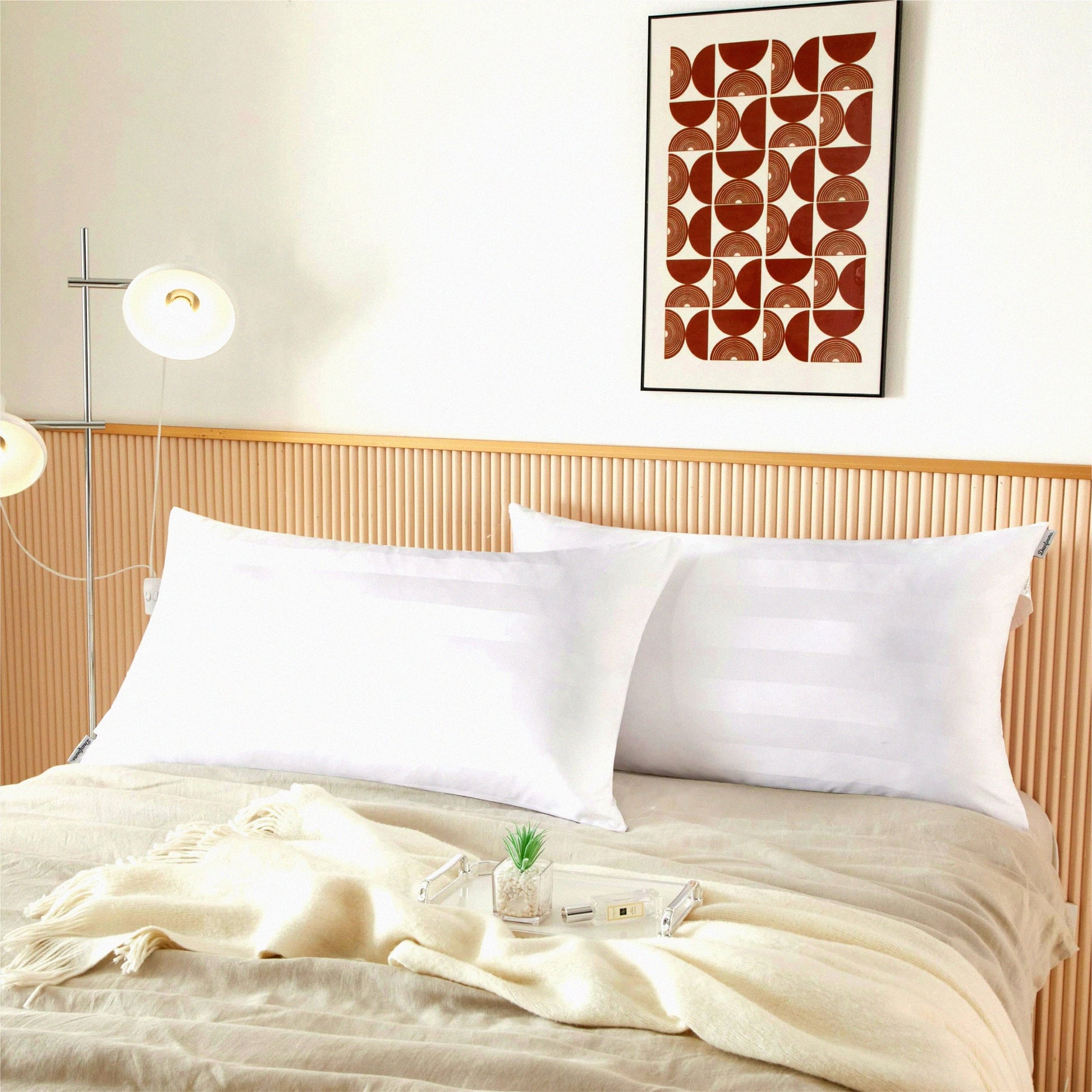 Luxury Stripe Jacquard Pillows - Set of 2 | Premium Size Bed Pillows with Jacquard Stripe Design | Plush and Comfortable for a Restful Sleep Experience