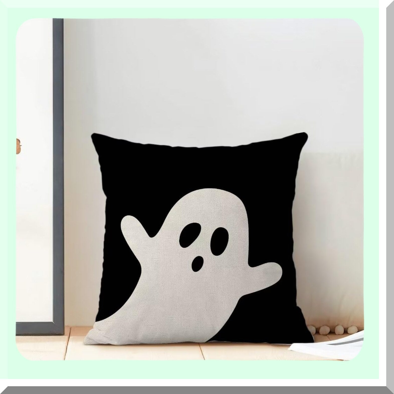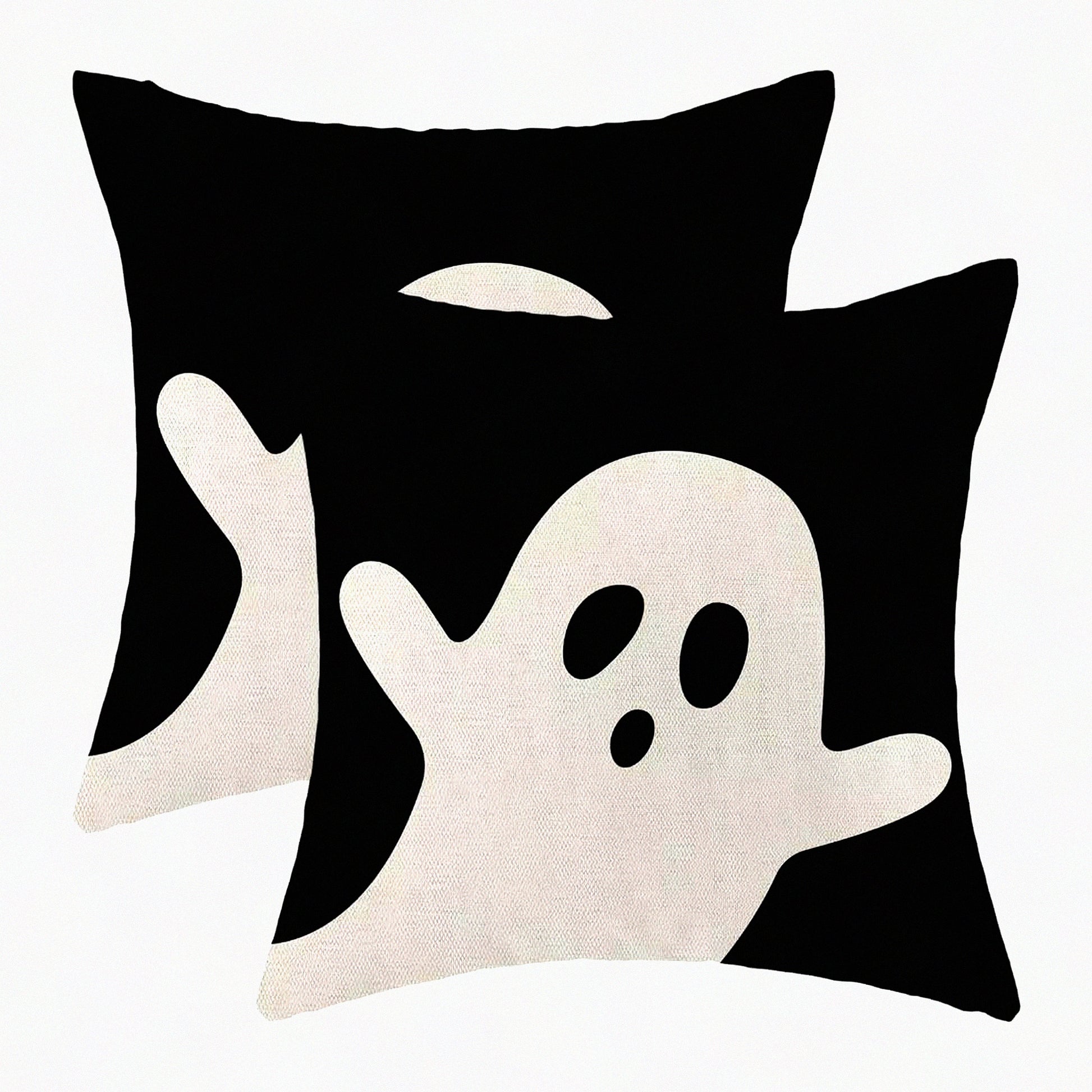 Ghostly Farmhouse Pillow Covers - Set of 2, 20x20 Inch Black & White Throw Pillows. Linen Decorative Cases for Couch, Sofa, Bedroom & Outdoor Decor.