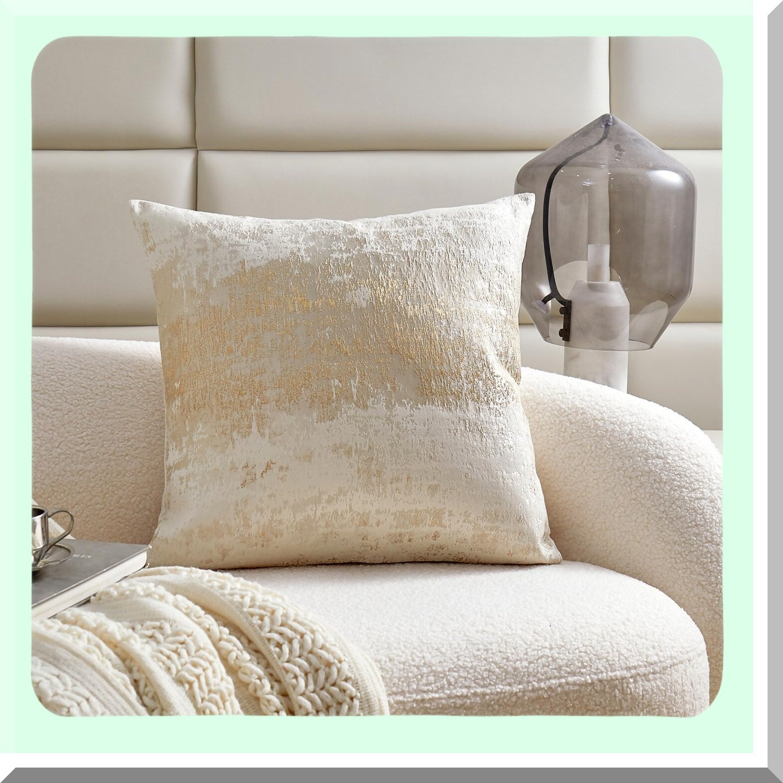 Golden Glitter Sparkle Cushion Cover - Soft Beige Square Pillowcase for Couch, Bed, Chair - Decorative Throw Pillow Cover - Cream Beige - 18x18 inches