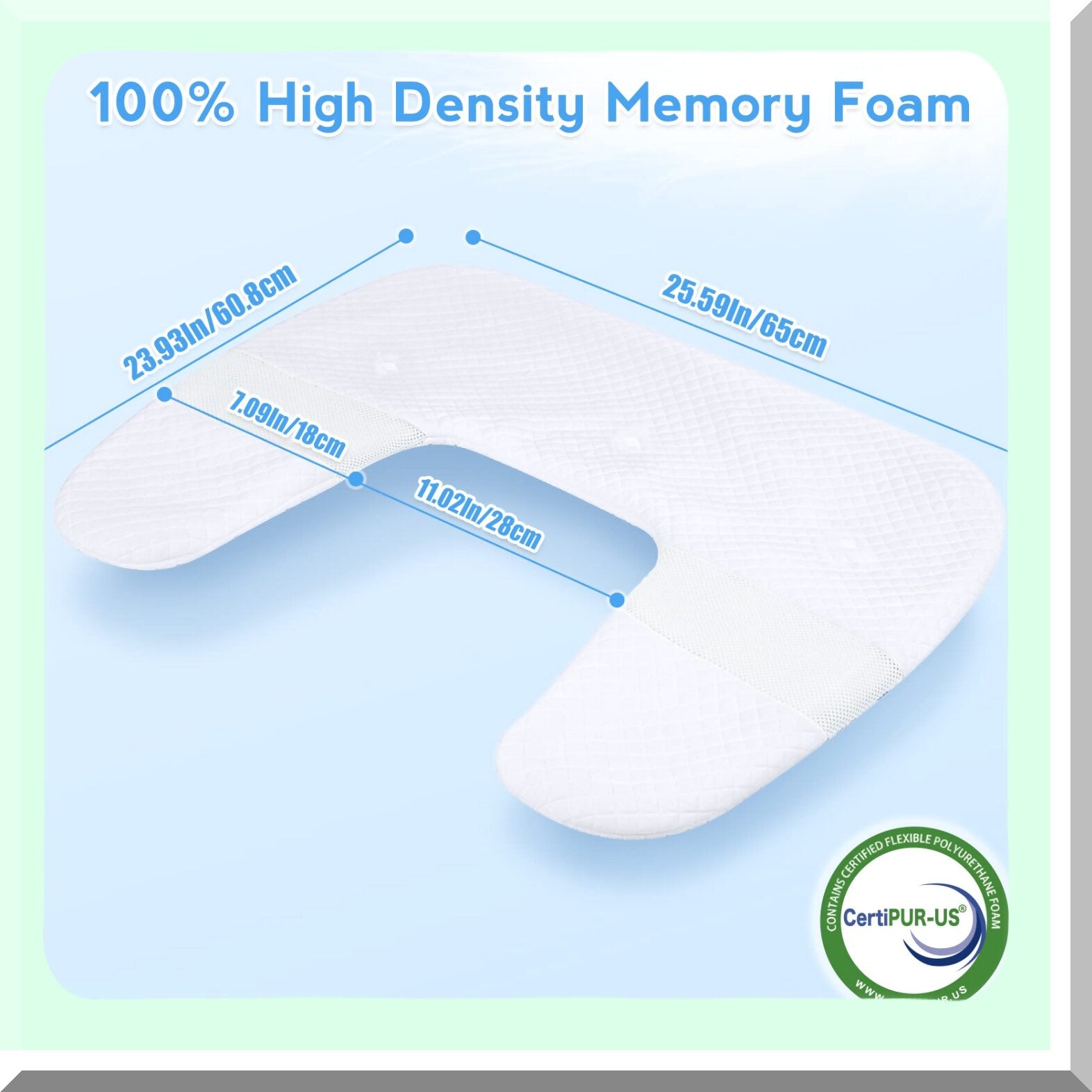 ErgoRest Side Sleeper Memory Foam Pillowcase - Odorless U-Shaped Orthopedic Support for White Bed. Wake up refreshed and pain-free!