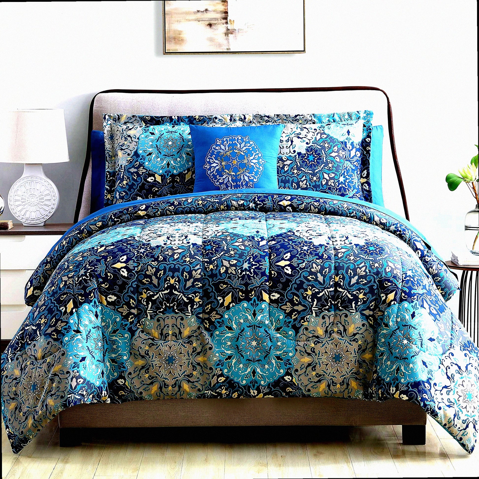 Elegant Granada Reversible Comforter Set - Luxurious Microfiber Bedding Collection with Printed Sheets, Shams, and Pillow - Top Quality Bed Set