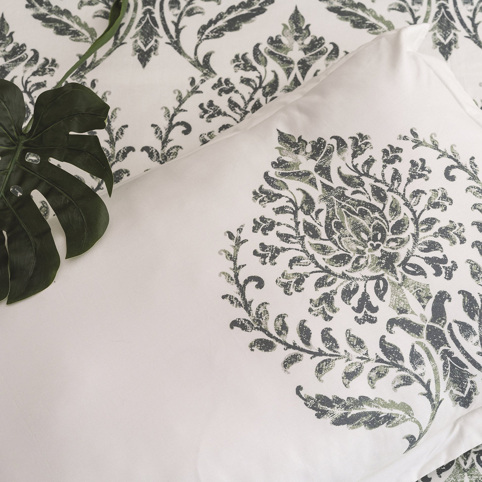 A1PDUV008-Queen Reversible Duvet Cover Trellis Damask Cotton, Wrinkle Free 3 Piece Duvet Bedding Set with Pillow Shams and Button Closure, Green, 88 x 92 Queen