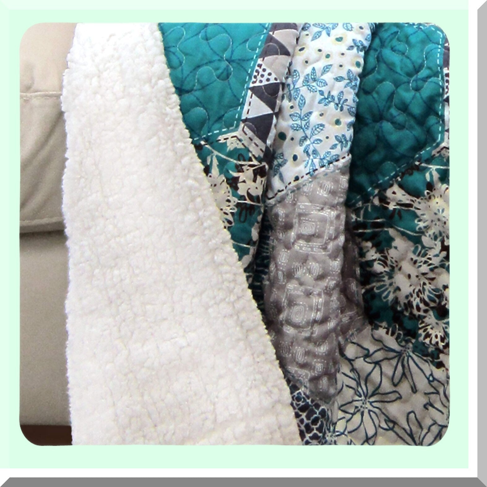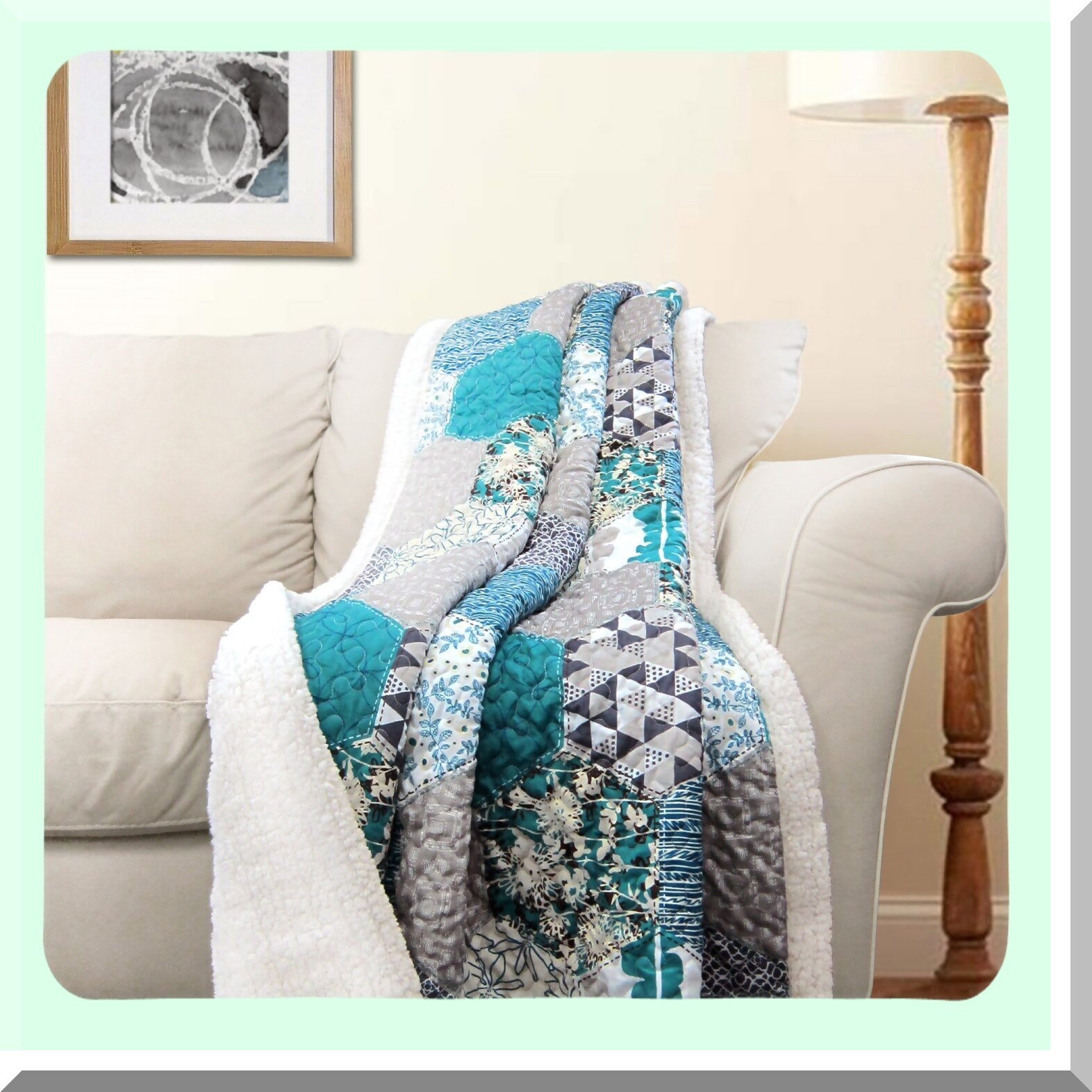HexaHaven Reversible Throw - Colorful Patchwork Blanket, Turquoise, 60 x 50"
