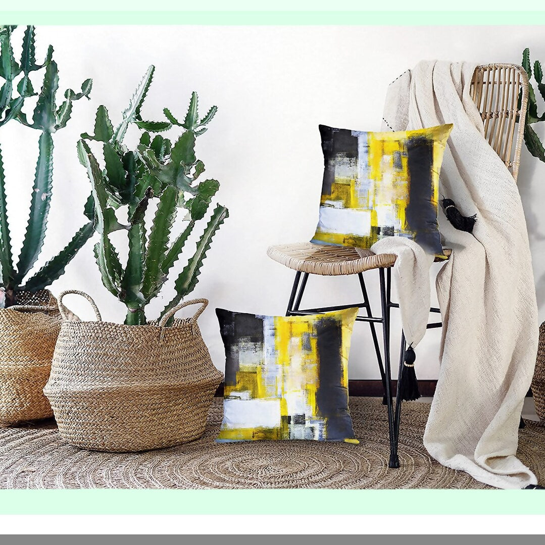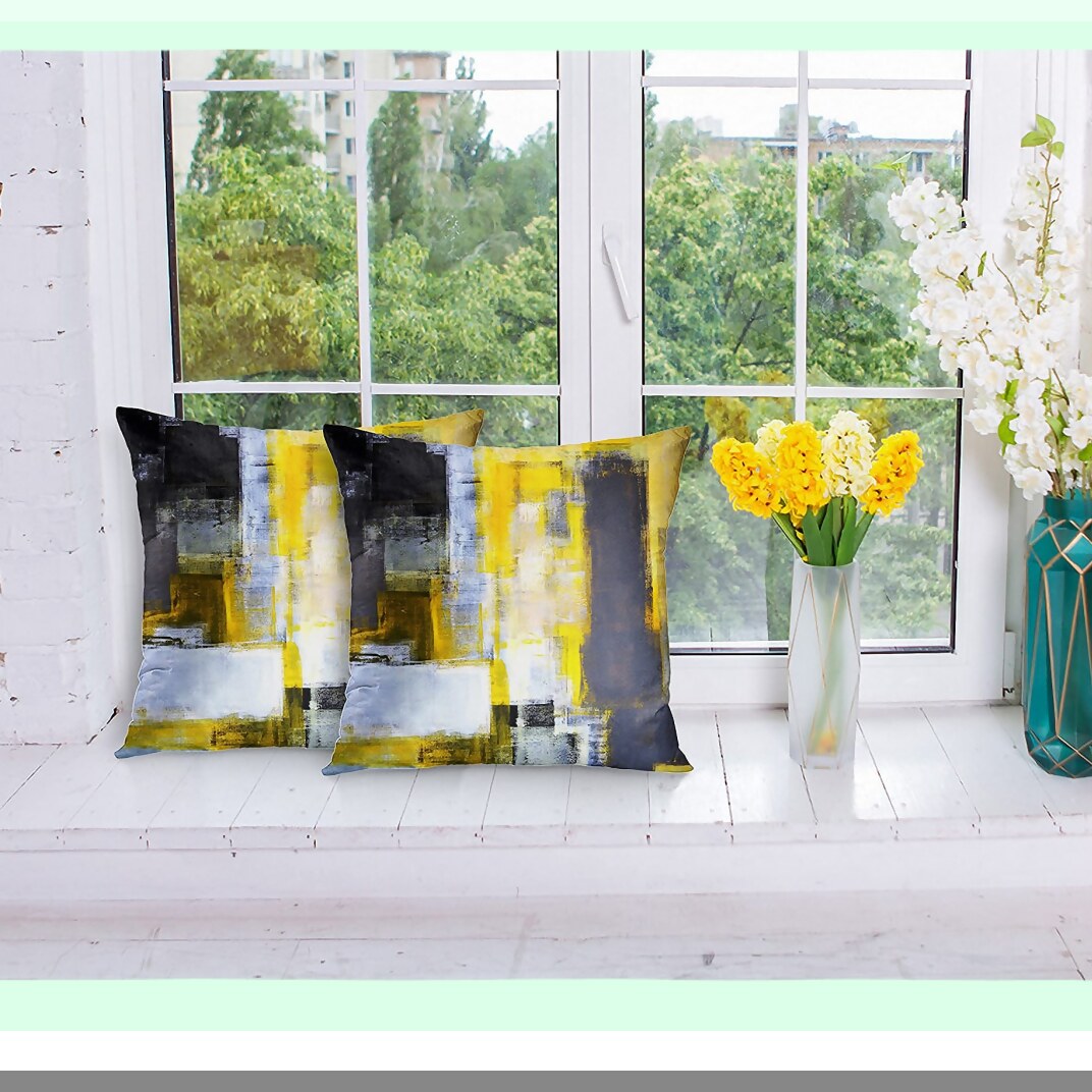 Abstract Fusion Pillow Covers - Set of 2 | Yellow White Black Decorative Cases | Modern Home Decor | Standard Square 18x18 Inches Pillowcases