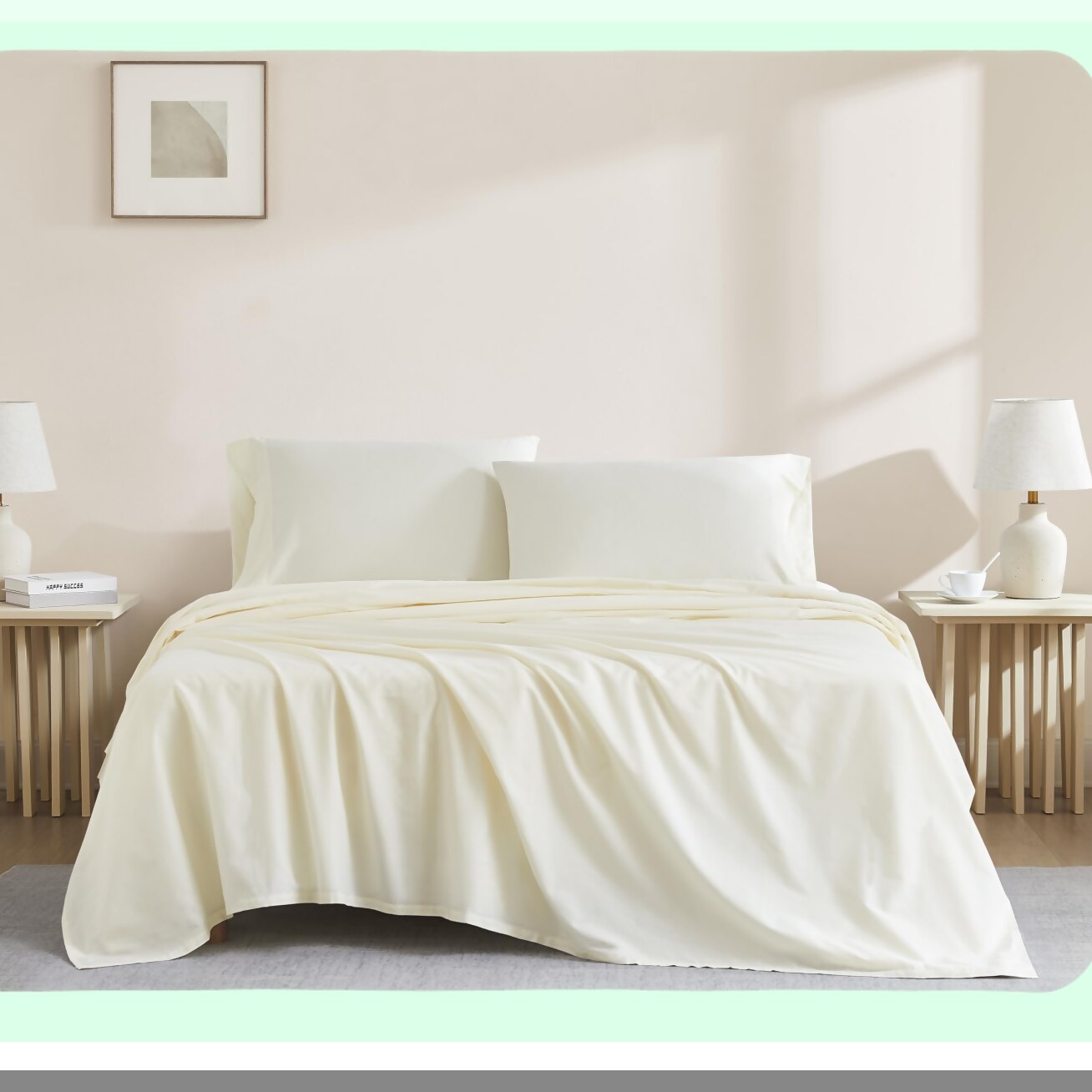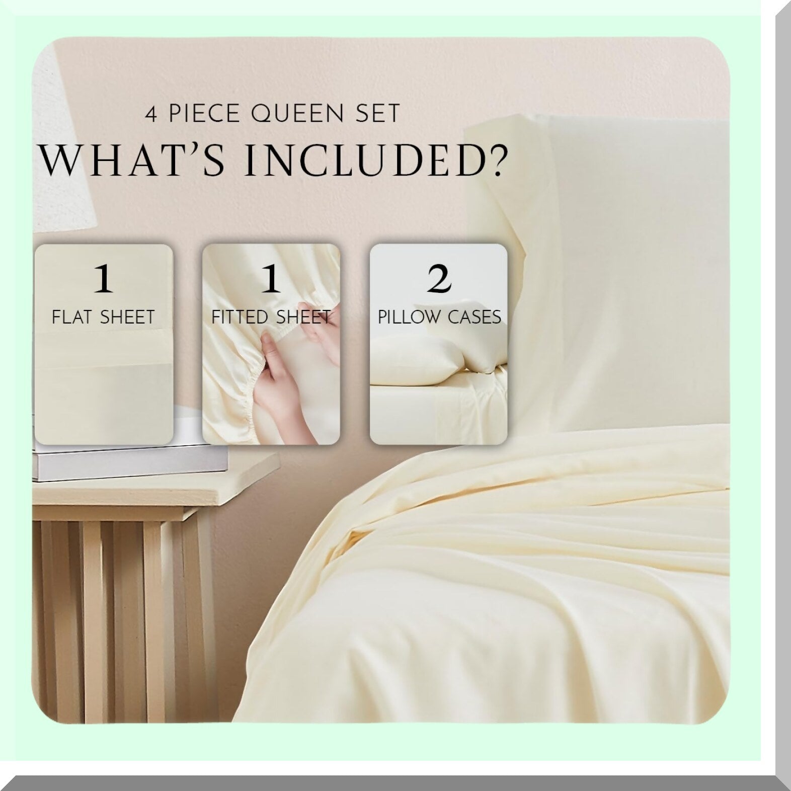 Luxury Ivory Cotton Queen Sheet Set - 144 Thread Count 4-Piece Bedding Set