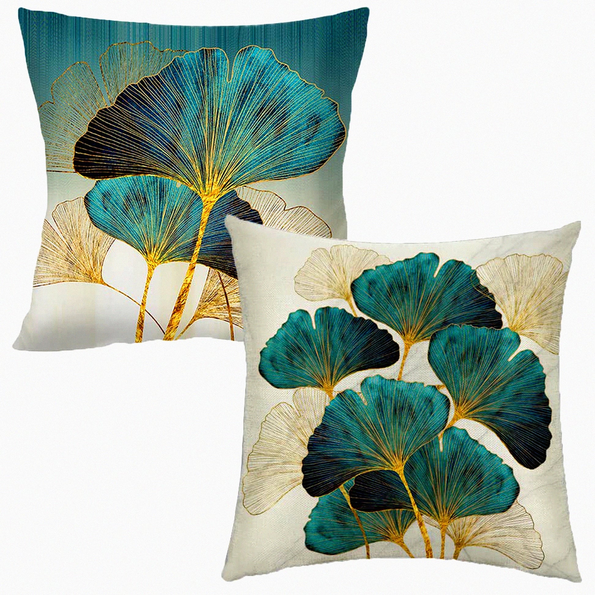 Green Leafy Oasis Pillow Covers - Set of 2 | 18x18 Inch Teal Cushion Cases | Turquoise Ginkgo Leaf Design for Sofa, Bedroom, Living Room Decor | Botanical Home Accent