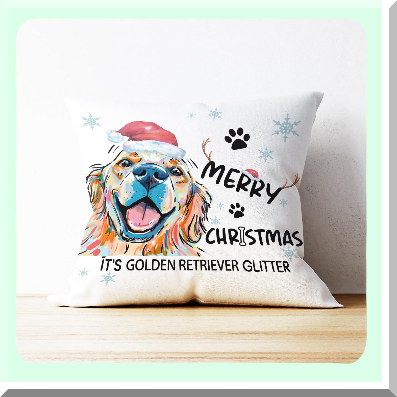Golden Glitter Retriever Pillow Covers - 18x18 Decorations & Gifts - Merry Throw Pillow Covers for Golden Retriever Lovers - Sparkling Home Decor