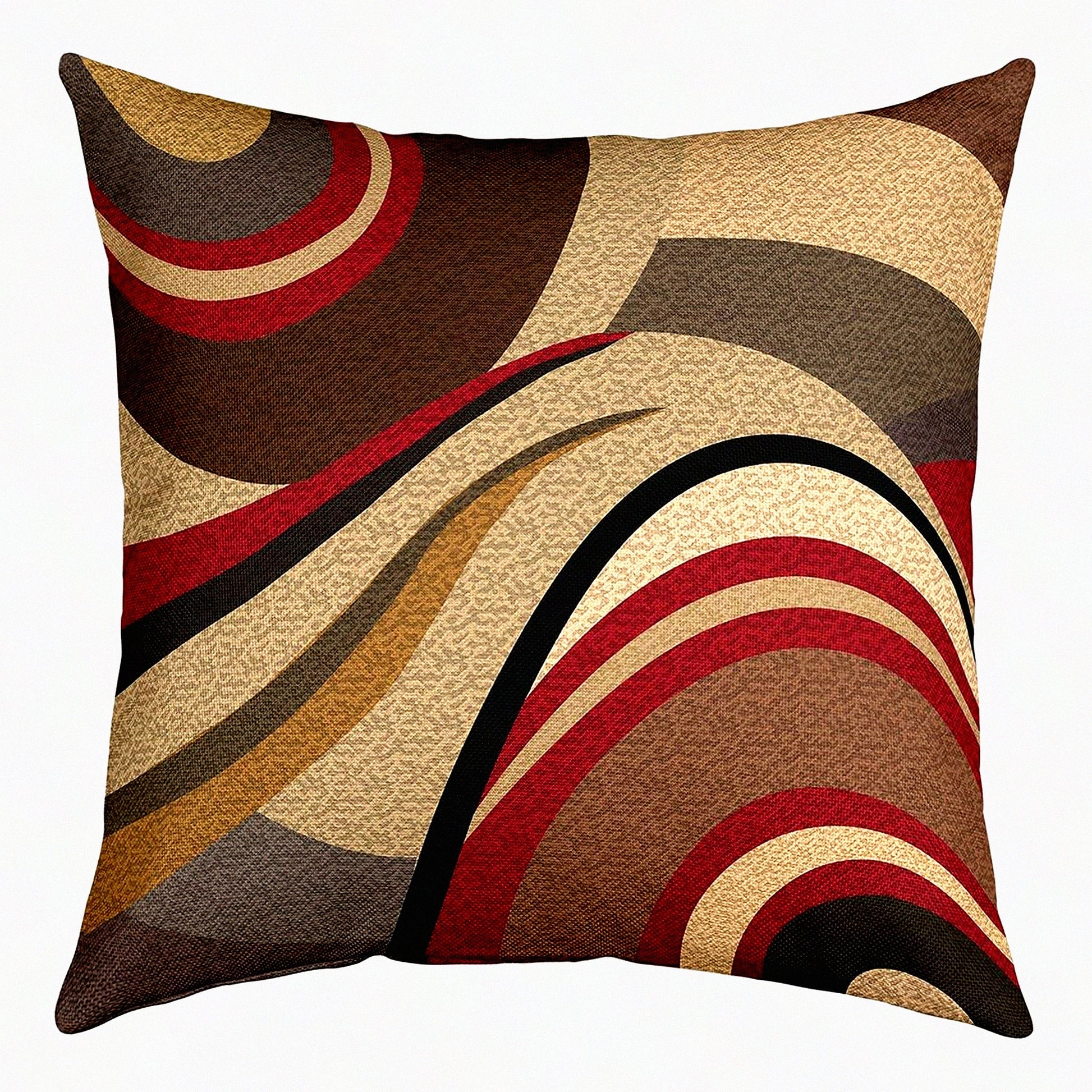 Geometric Stripe Outdoor Pillow Cover Set - Burgundy Red & Brown Grey Decor Cushion Case for Couch Sofa, Modern Art Pillowcases, 20x20 Inches