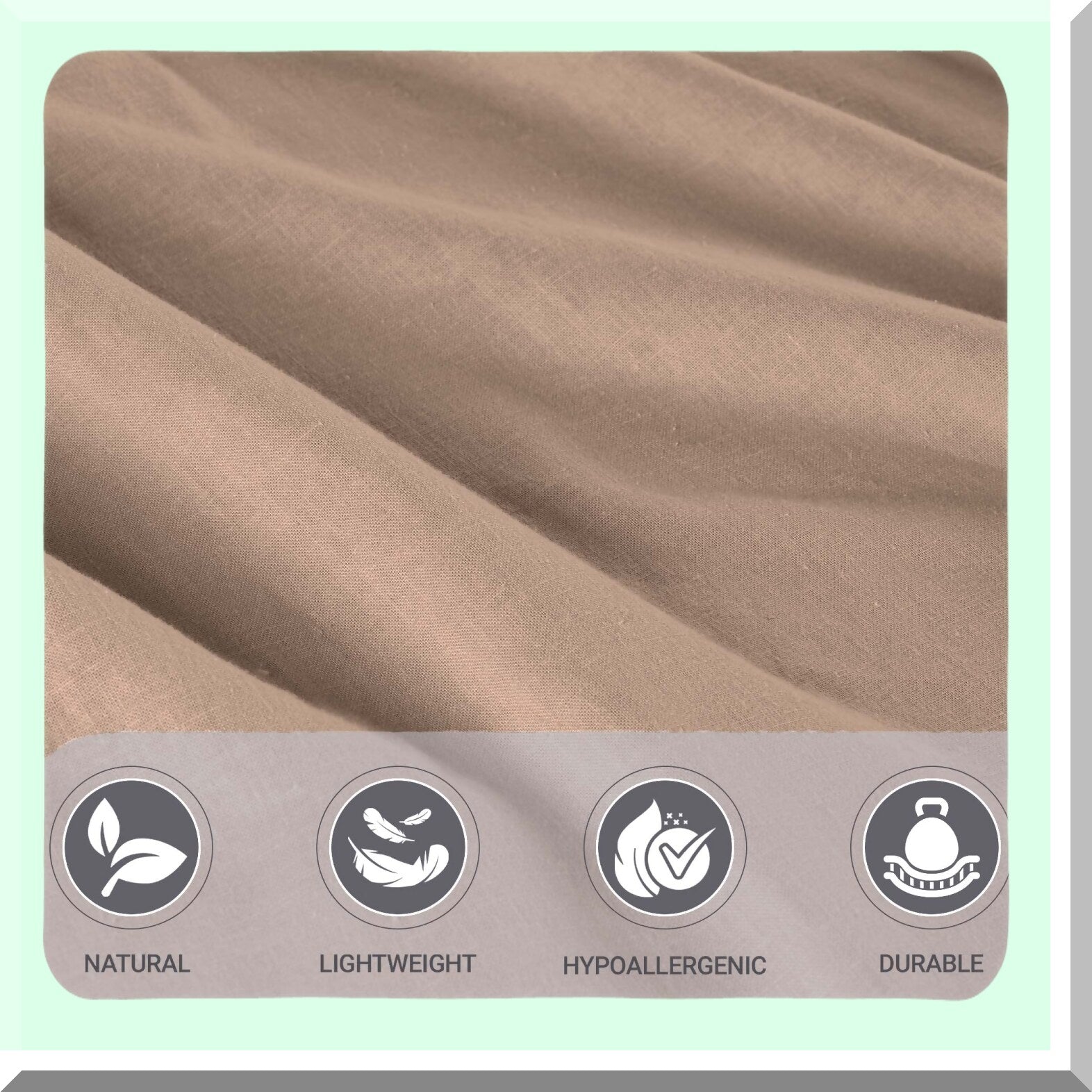 Modern Linen Cotton Blend Sheet Set - Queen Size Tan Bedding Kit with Oversized Fitted Sheet, Flat Sheet, and Pillowcases - Bedroom Decor Essentials