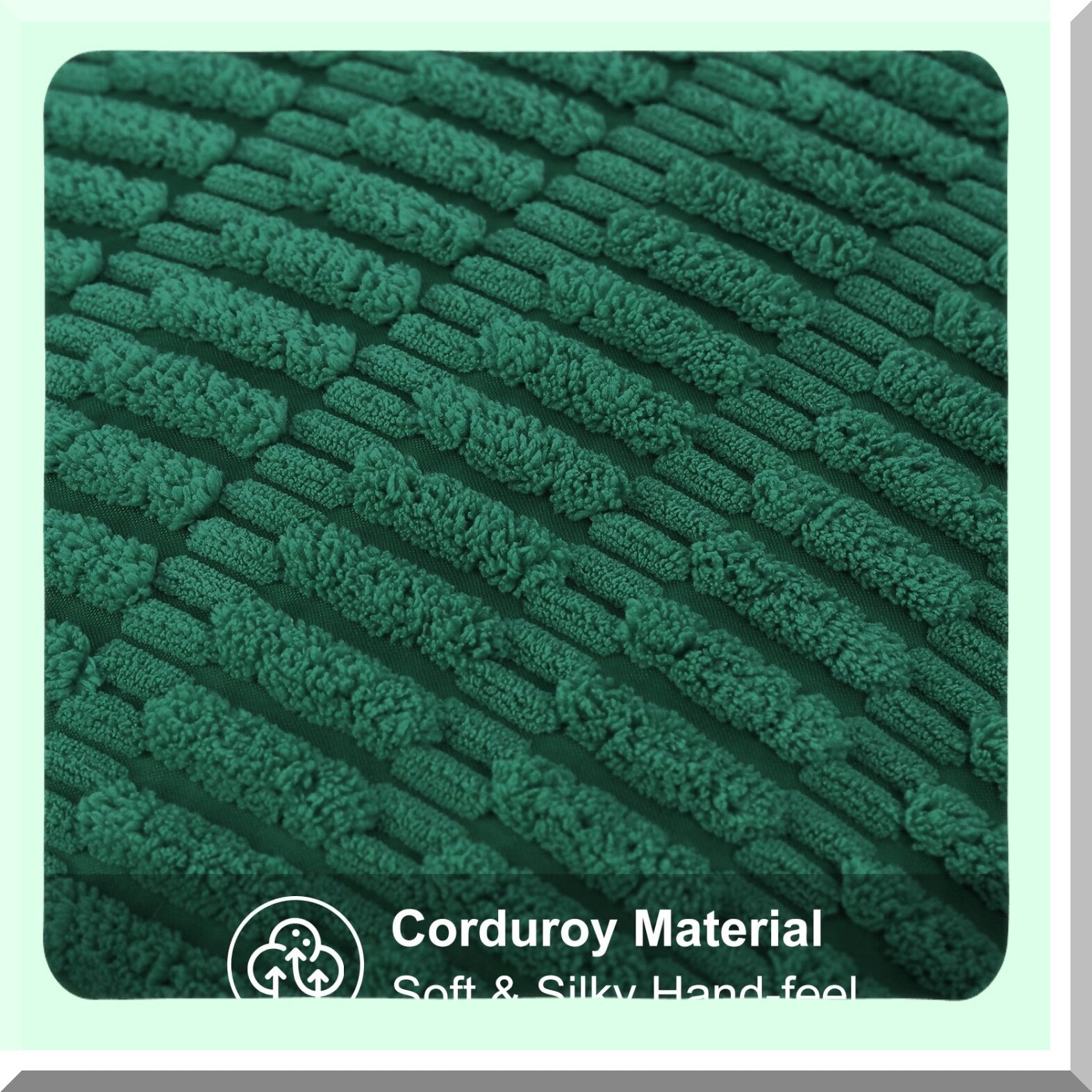 Green Stripe Corduroy Pillow Covers - Set of 2 | 18x18 Square Decorative Throw Pillow Cases for Couch, Living Room, Bed, Sofa | Modern Farmhouse Boho Home Decor Accent
