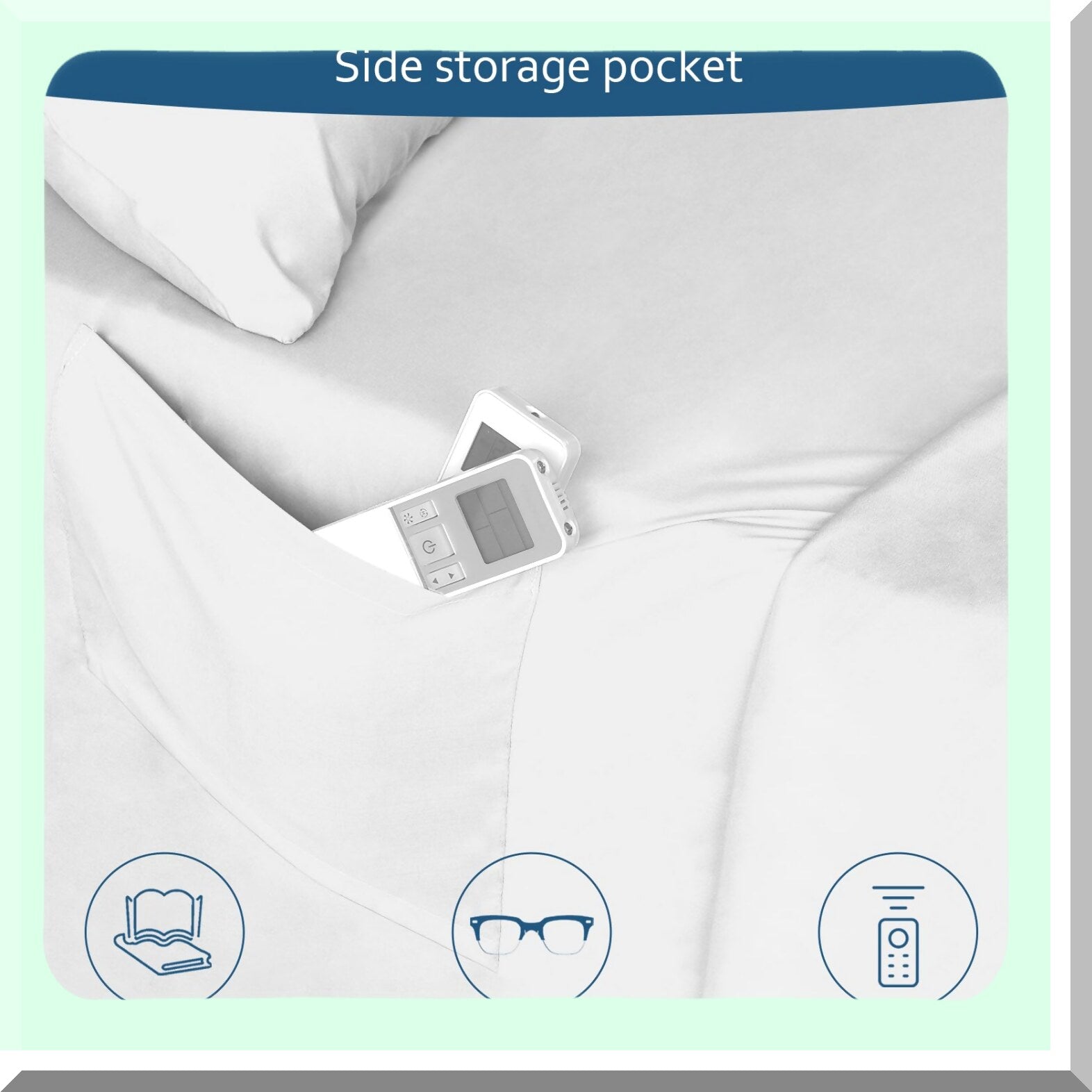 Luxury Air Bed Sheet Set - Deep Pocket Twin Size 4 Piece Set with Side Storage Pocket. Fits 16-24in Pillow Top Mattresses. White, Fitted Sheet, Pillowcase, Flat Sheet.