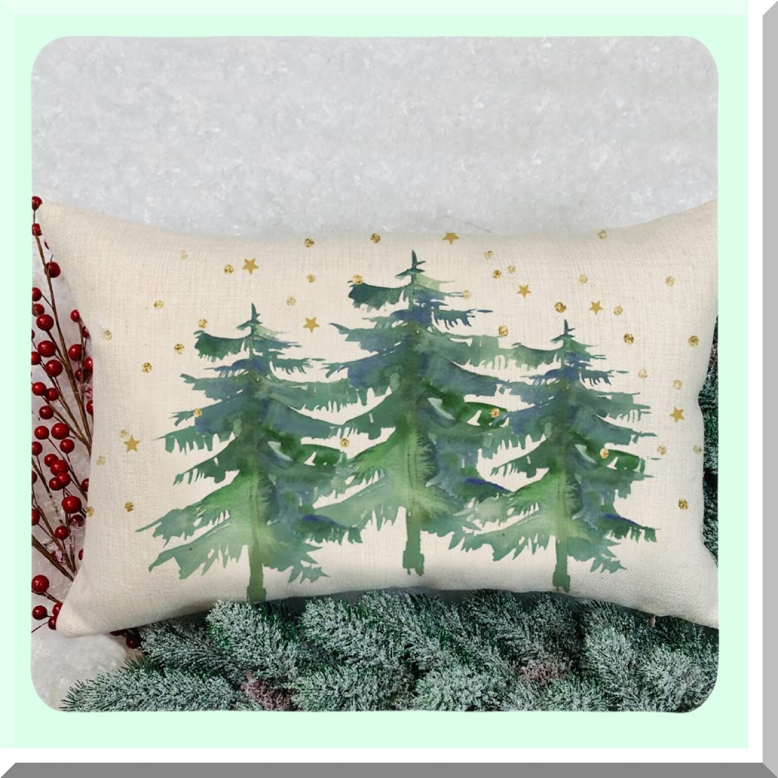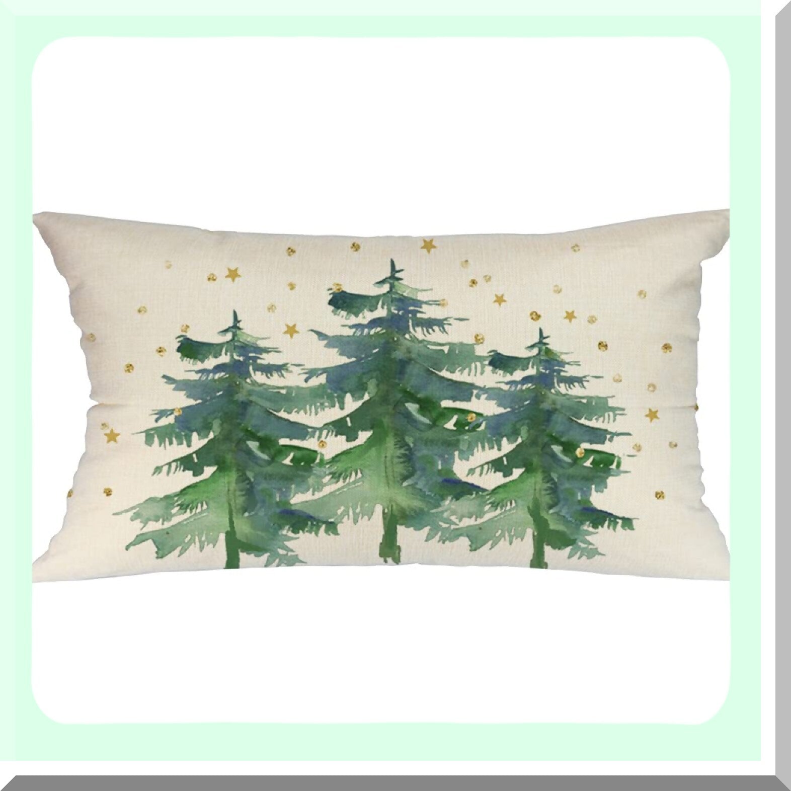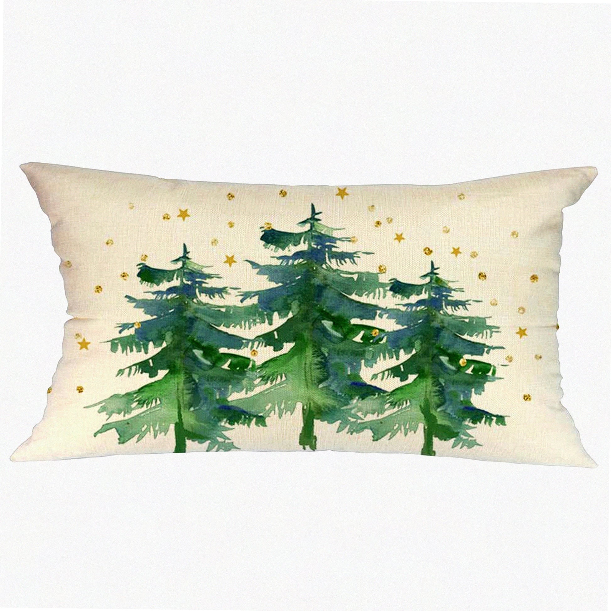 Winter Wonderland Lumbar Pillow Cover - Festive Christmas Tree Decorations for Farmhouse Couch - Holiday Throw Pillows 12x20 Green