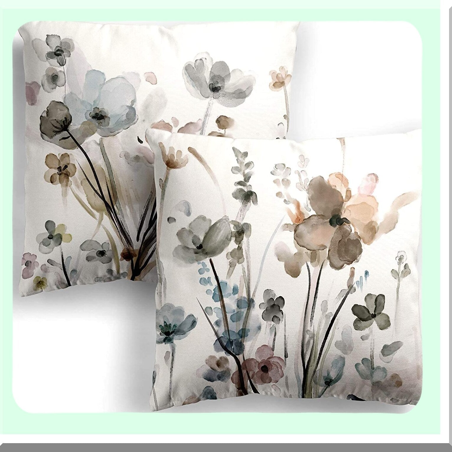 Floral Bliss Pillowcase Set - 18x18 Decorative Cushion Covers for Sofa, Couch, Bedroom & Car - Modern Square Flower Throw Pillow Cases (Pack of 2)