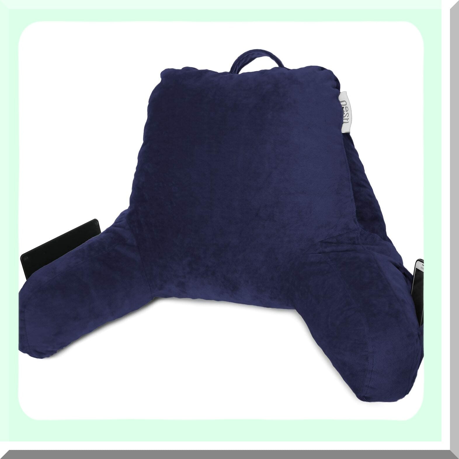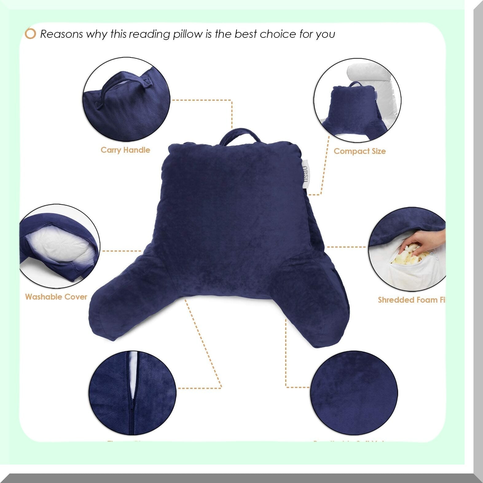 Navy Velvet Lap Desk Reading Pillow - Memory Foam Back Support with Arms for Bed Rest - Portable Laptop Lap Desk - Sitting in Bed Back Pillow