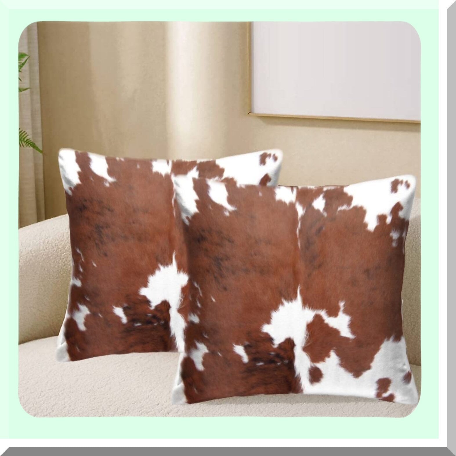 Rustic Cowhide Farm Pillow Cover - 20x20 Inch Velvet Throw Cushion Case for Home Sofa - Western Country Decor Brown Orange White Pattern Print