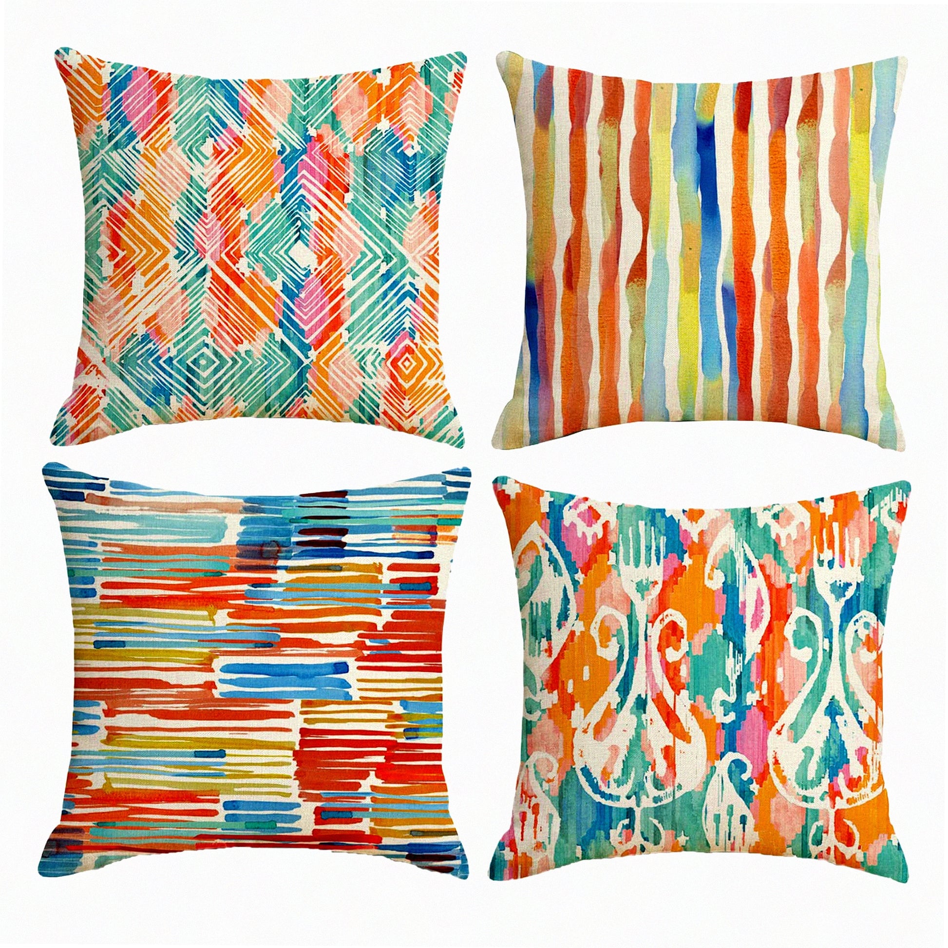 Vintage Watercolor Boho Chic Throw Pillow Set - Modern Art Decorative Cushion Covers for Family Sofa, Living Room, Outdoor Patio - 18x18 Inch Multicolor Pillow Cases (Set of 4)