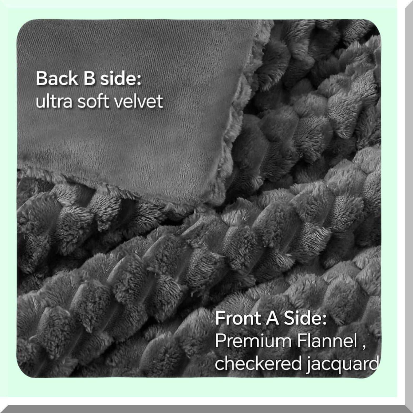Plushy Twin Comforter Set - Premium Flannel Checkered Bedding, Cozy Velvet Comforter Set in Grey, 2-Piece Winter Bed Set for Twin Beds