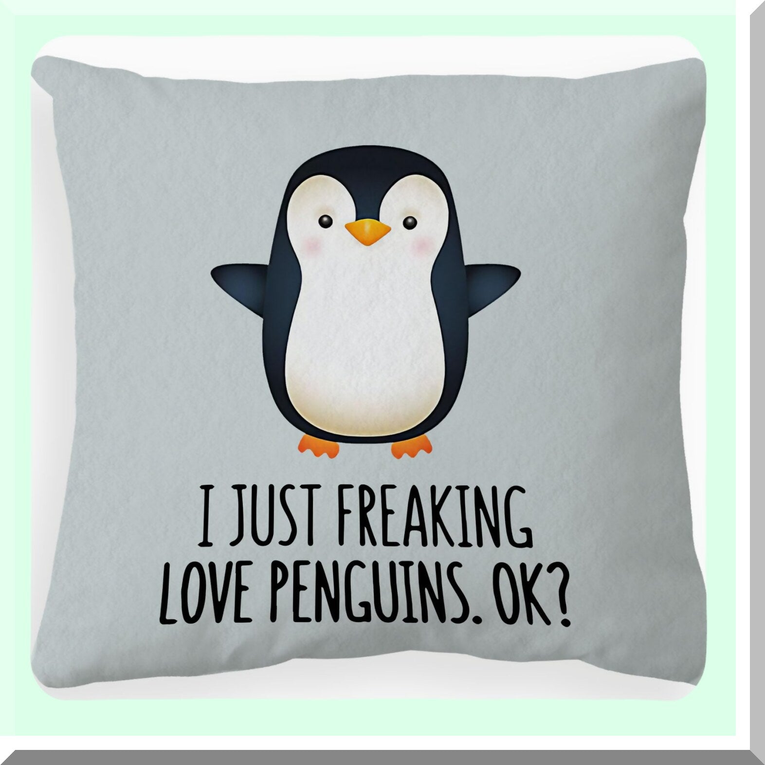 Penguin Love Decorative Pillow Cover - Funny Penguin Gifts for Son, Daughter, Sister - 18x18 Inch Home Decor Cushion Case - Gray Penguin Design
