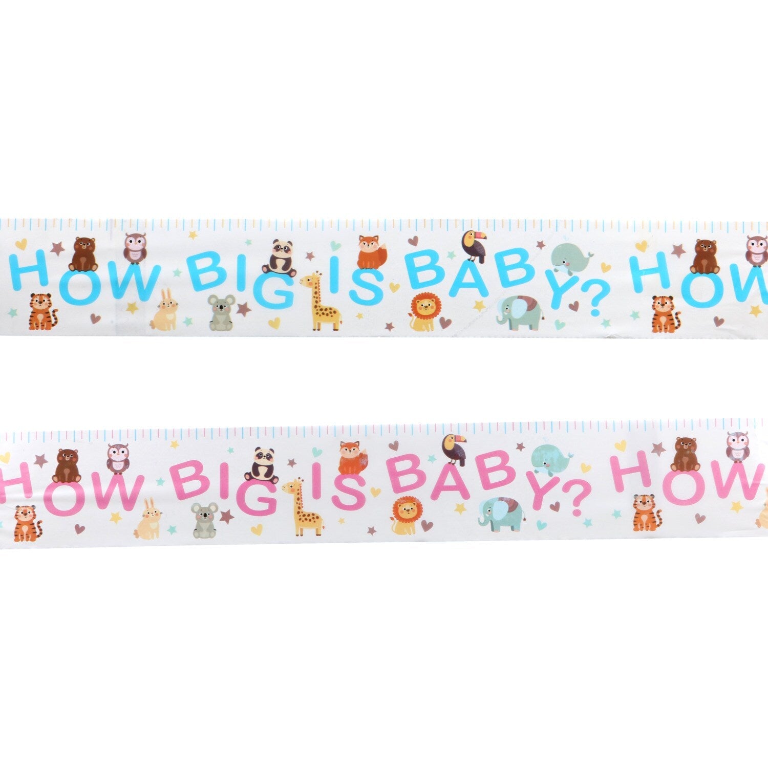 Comes with (Pack of 36). Wrap up your baby shower party planning by incorporating fun games! Baby Bump Measuring Game features a long, plastic strip of ribbon decorated with a repeating block text reading "How big is baby?" and including adorable animals. It is printed in precious baby colors, is lined with inch marks for measuring, and comes assorted among pink and blue text. Let your party guests have a try at guessing how big your sweet baby bump is and whoever guesses the closest wins. Bring on a festive baby bash!