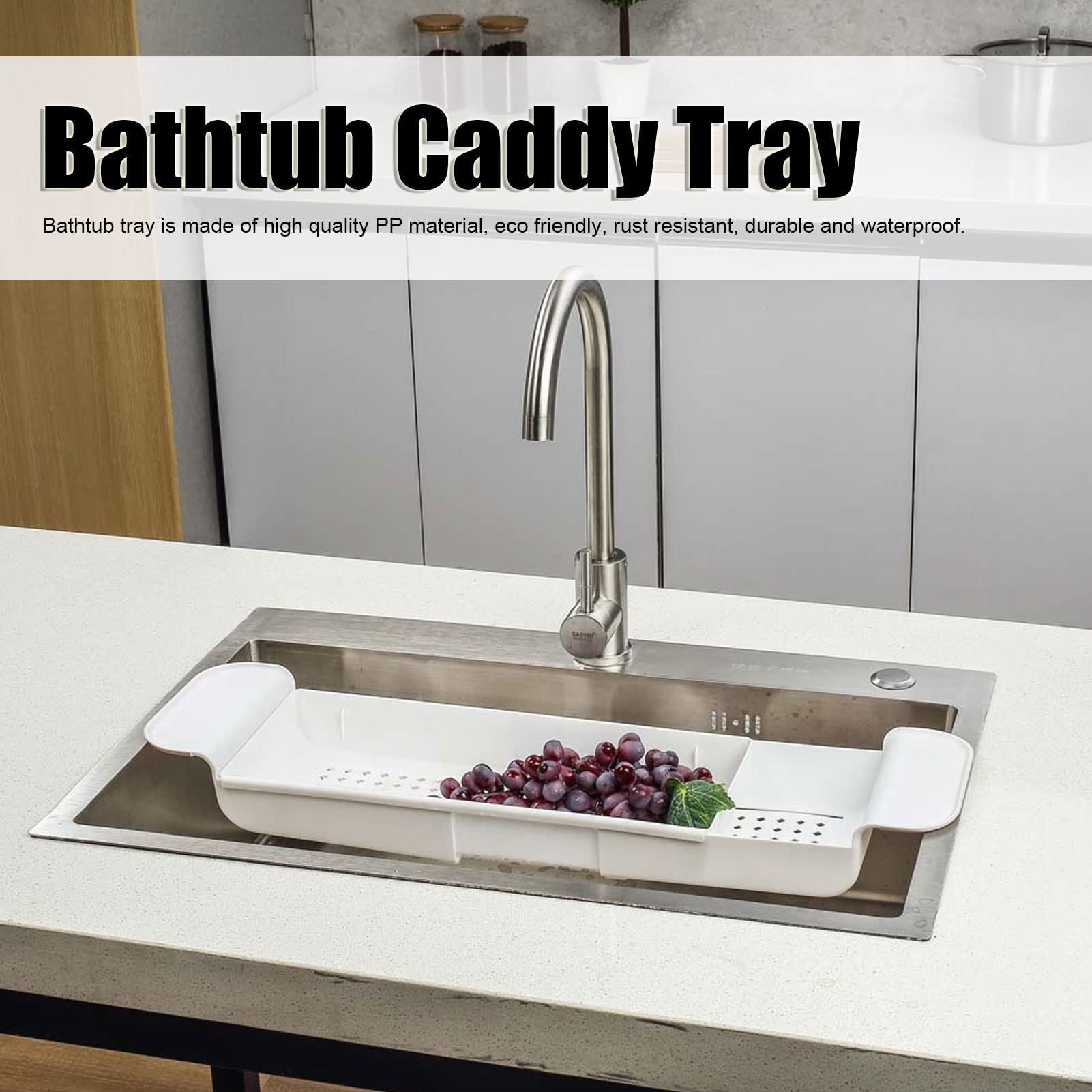 Bathtub Tray Caddy, Plastic Sink Storage Rack Expandable Bath Organizer Shelf for Kitchen Bathroom, White(White)