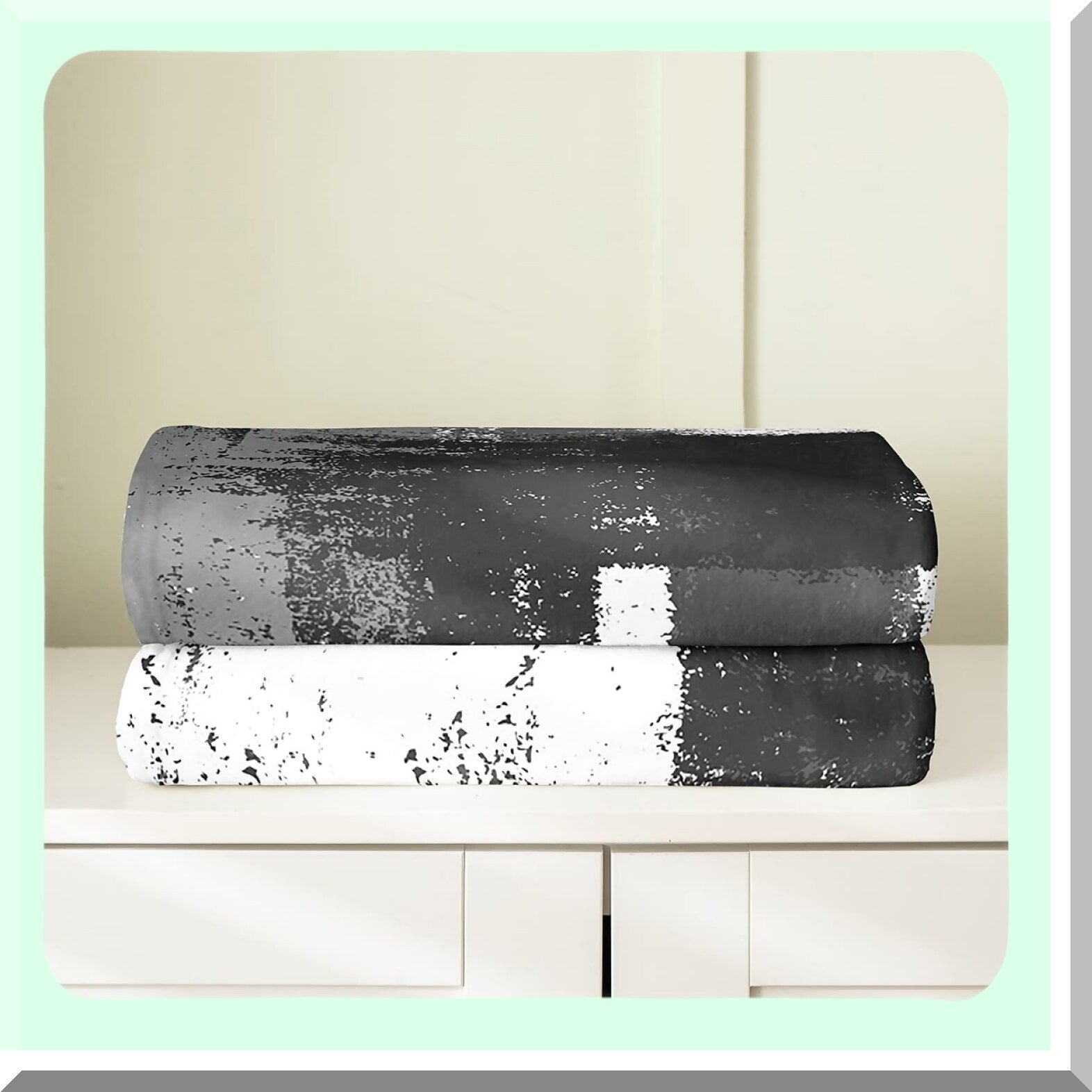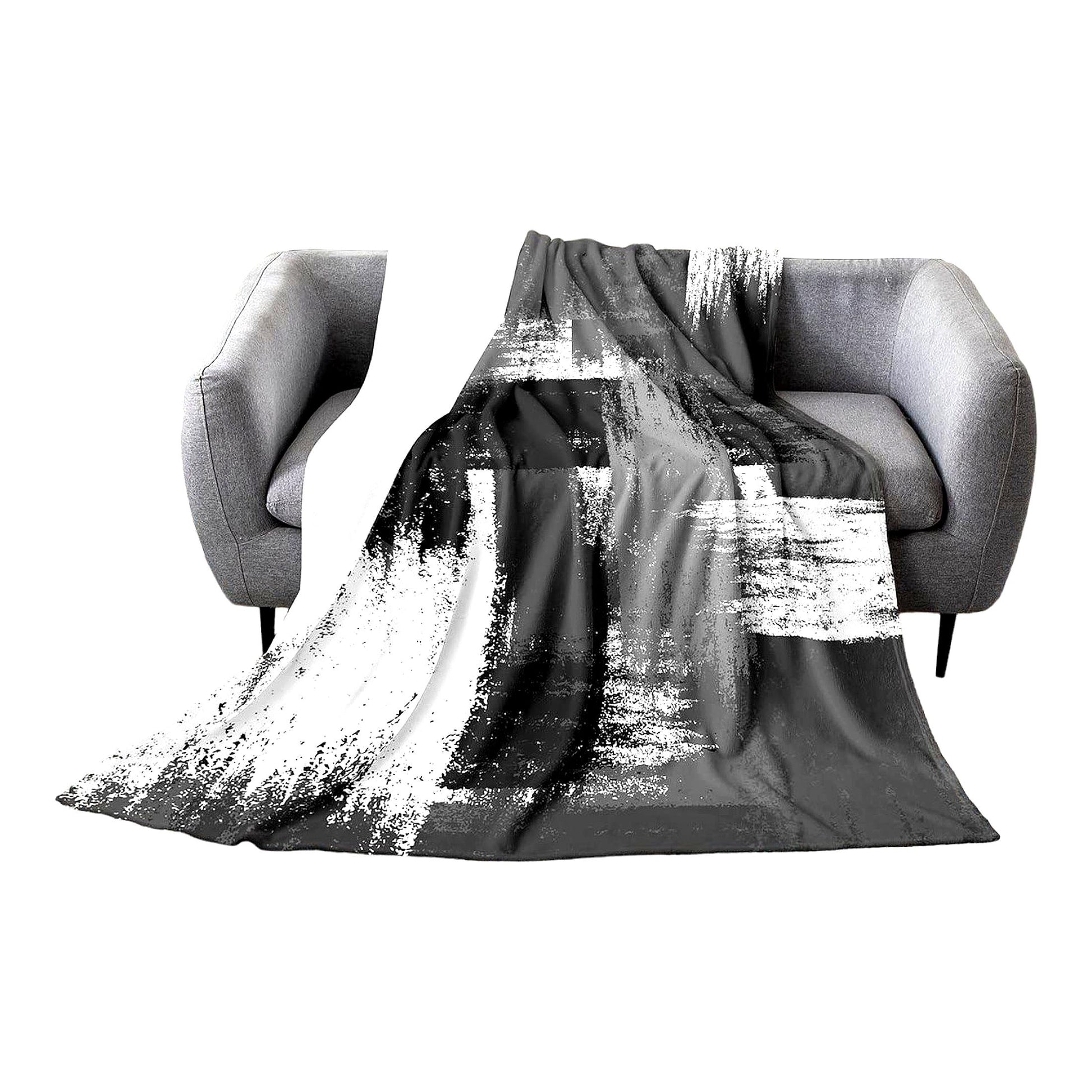 GeoBuff CozyCheck Flannel Fleece Throw - All Season Modern Art Blanket for Bed, Sofa, Couch - Black Grey White Geometry Design - 40"x50""