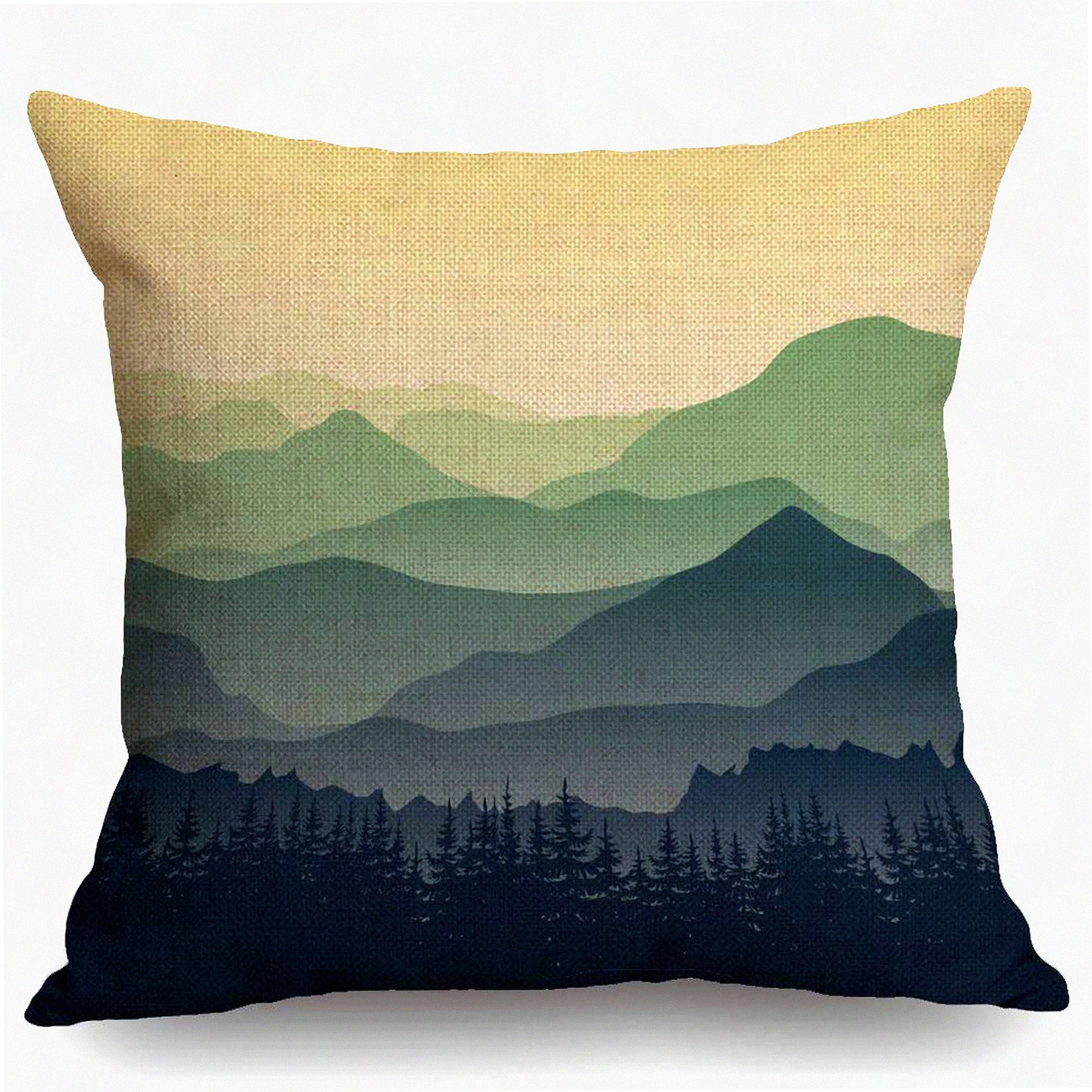 Misty Mountain Greenery Linen Sofa Pillow Cover - 18" x 18" Decorative Cushion Case for Home Decor and Couch - Foggy Mountain Theme