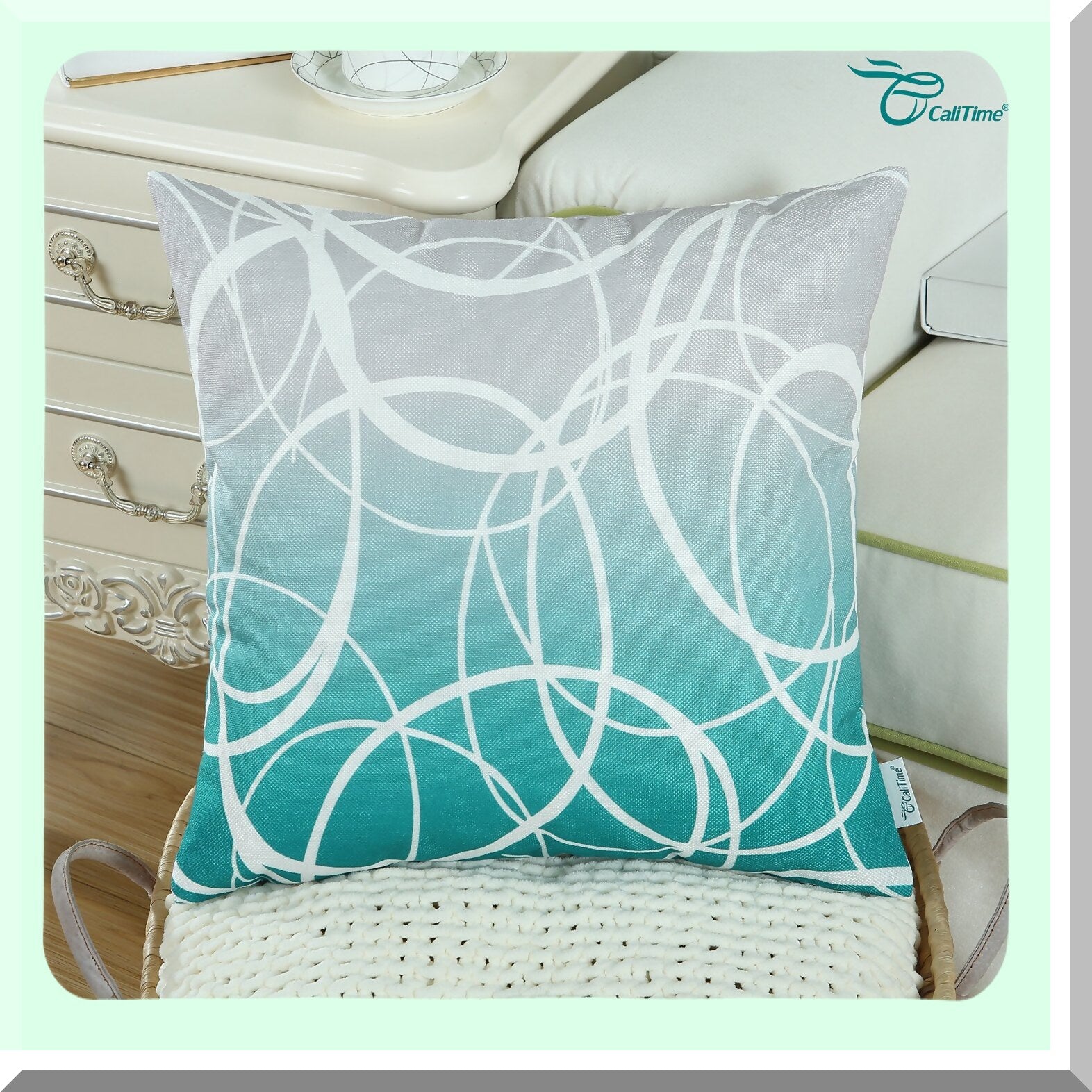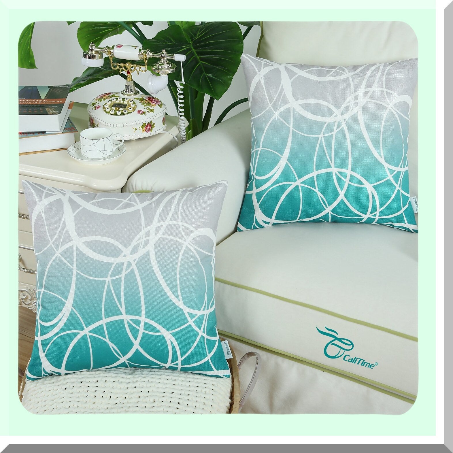 Gradient Ombre Circle Rings Pillow Covers - Set of 2 Soft Canvas Cases for Couch Sofa Home Decor, Modern Design, 18 X 18 Inches, Gray Teal