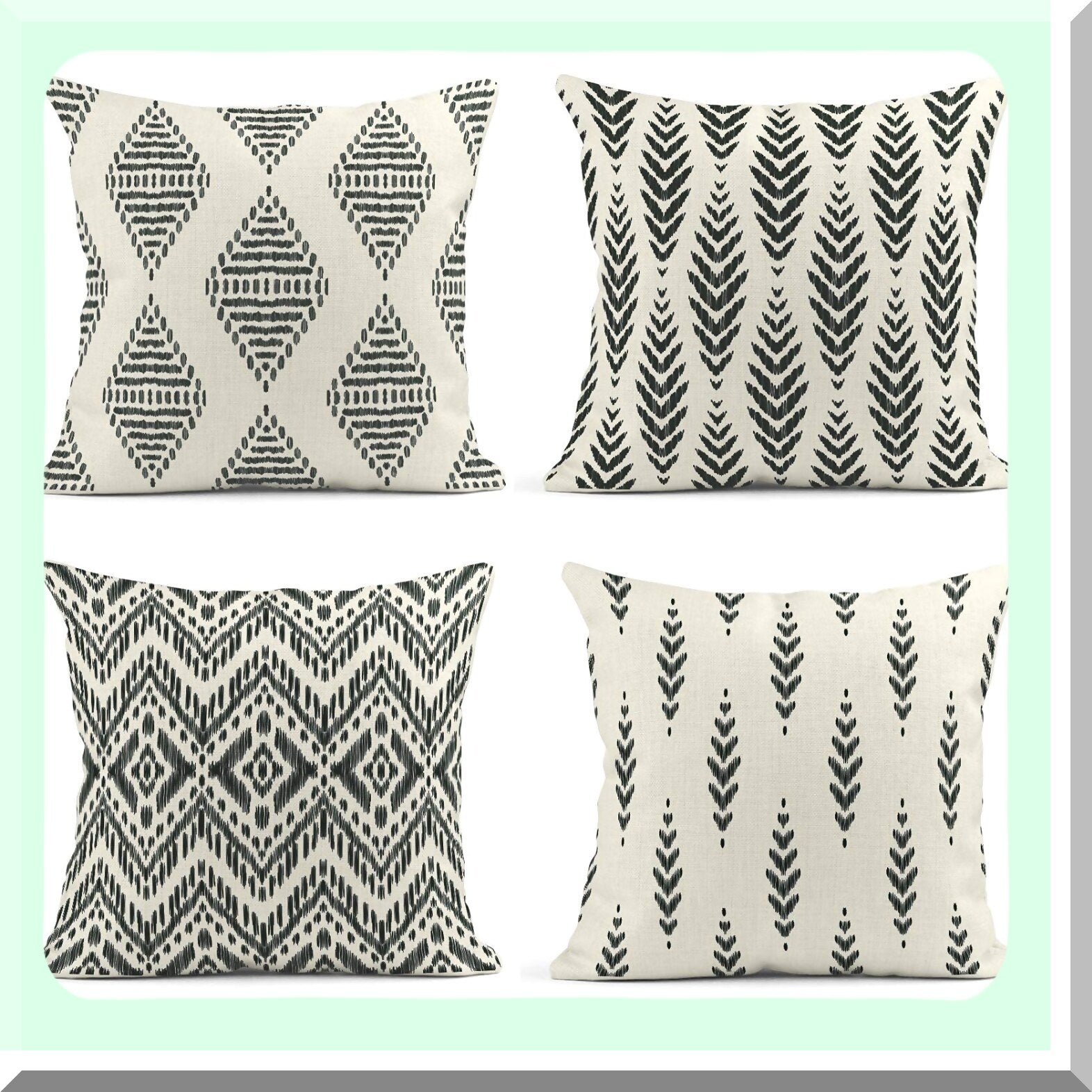 Boho Ikat Tribal Herringbone Pillow Covers - Set of 4 | Ethnic Bohemian Decorative Linen Cases for Home Ideas | Square 18x18 Inches Pillowcases
