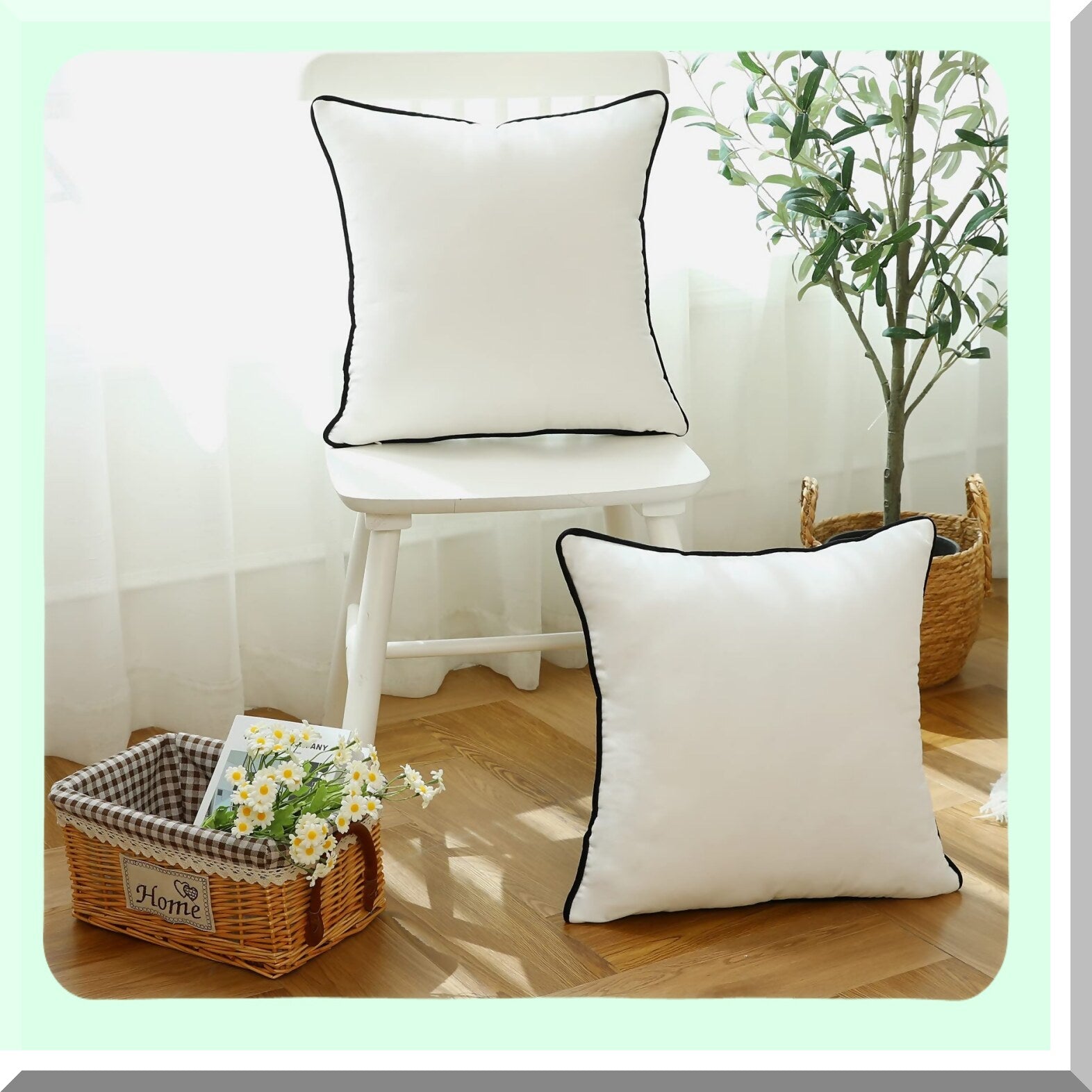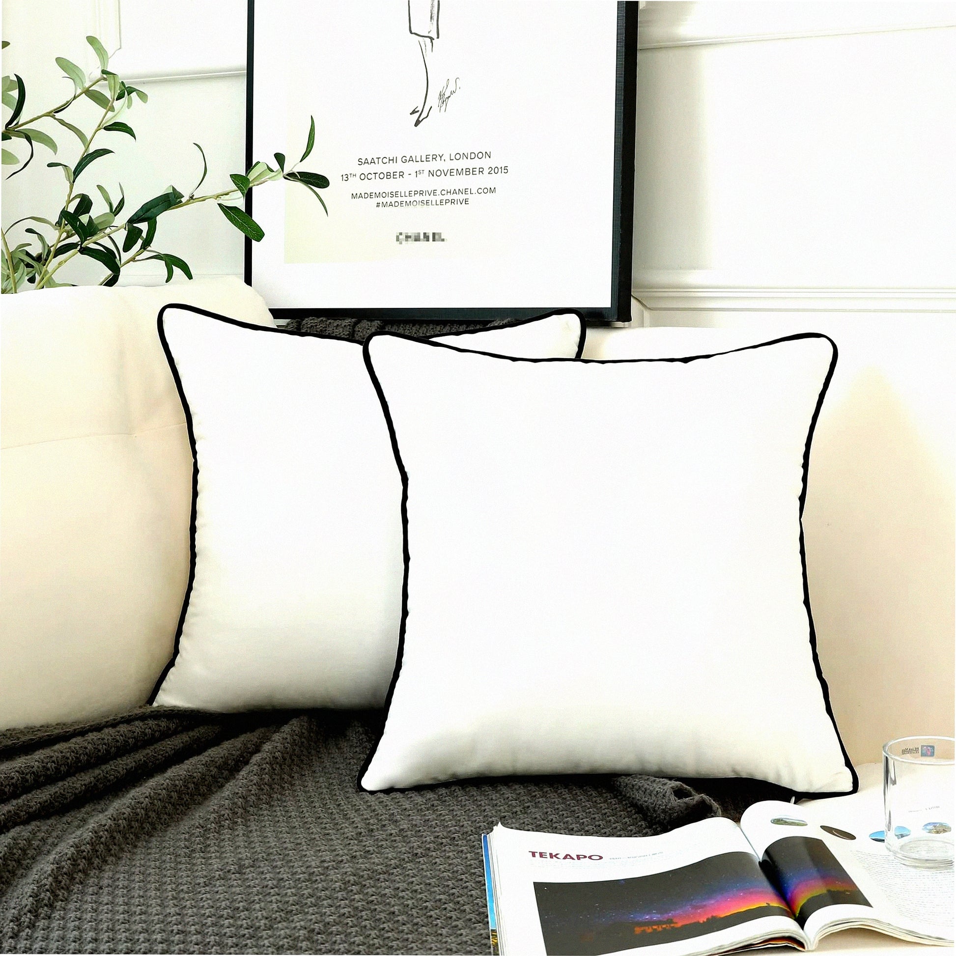 These white velvet throw pillow covers offer a modern minimalist style with solid decorative black rope edging. They are soft and designed to fit 18 x 18 inch cushions, making them suitable for sofas, bedrooms, and party decor. The set includes two covers, providing a cohesive look for your space. The velvet material adds a touch of luxury and comfort, enhancing the overall aesthetic and feel of your home decor.