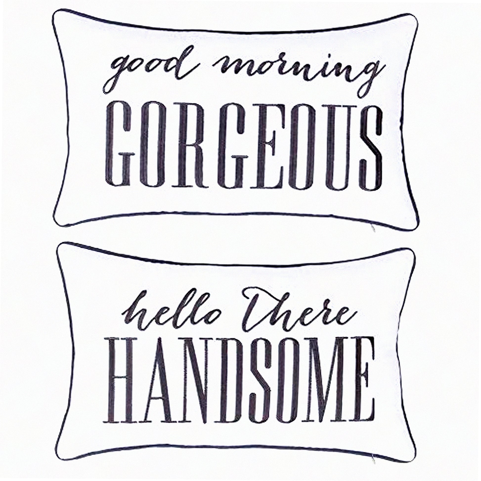 Embroidered Lumbar Decorative Pillow Cover Set - Newlyweds Gift - Bedroom Decor - Ivory - 12x20 Inches - Hello Handsome Good Morning Gorgeous